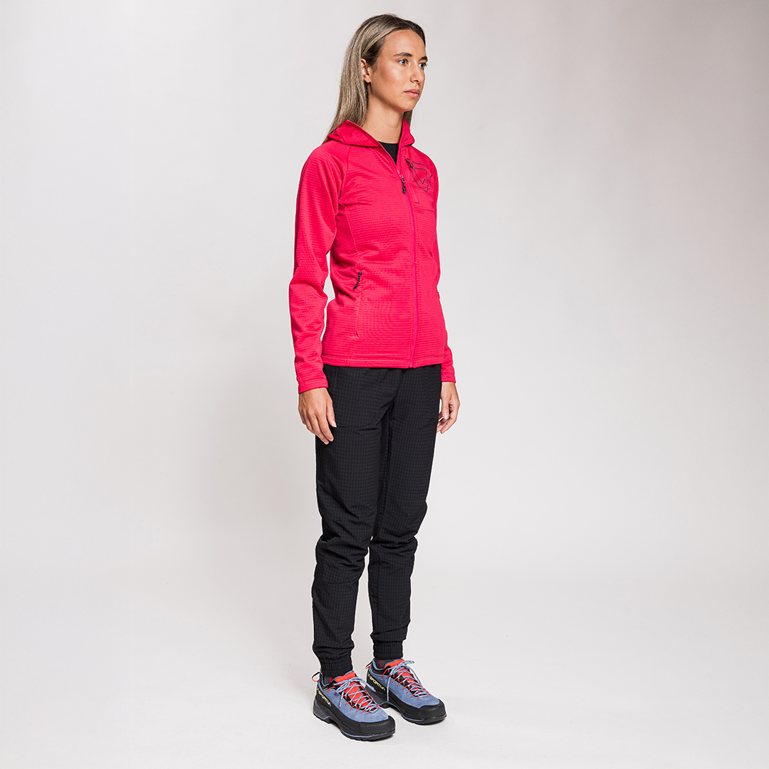 La felpa Arrows da montagna è una sintesi di stile e funzionalità, progettata per affrontare le sfide dell'ambiente montano con eleganza. Il tessuto presenta un motivo a rilievo a nido d'ape sul retro che conferisce originalità e trattiene efficacemente il calore. Le cuciture piatte garantiscono una vestibilità comoda evitando spessori.