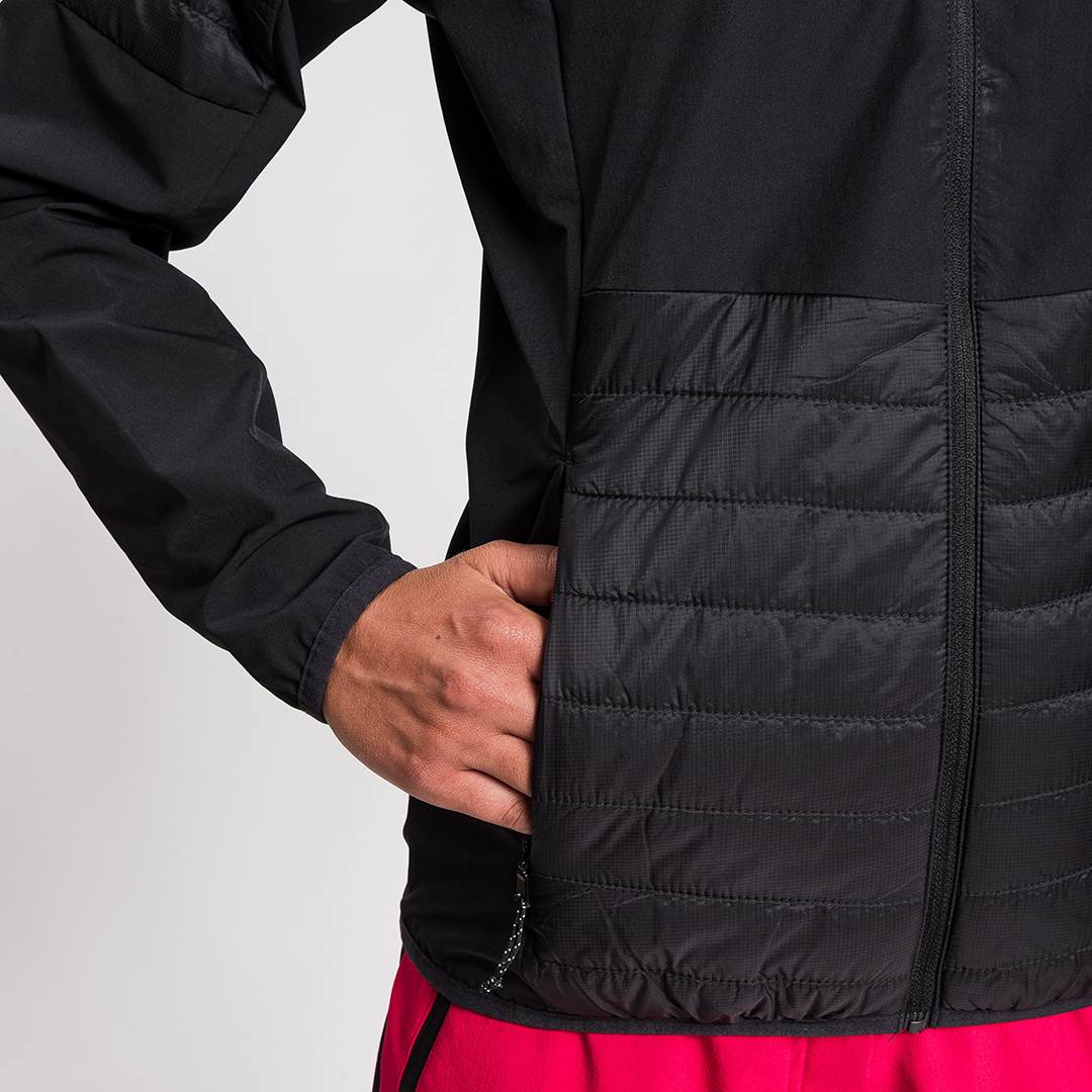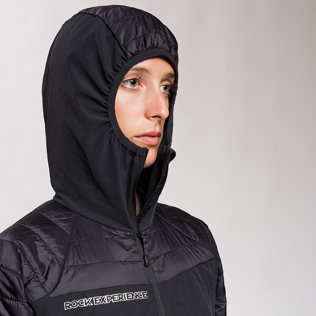- Inserti in nylon twill stretch sul petto, cappuccio, mezze maniche e pannelli laterali per una maggiore mobilità.