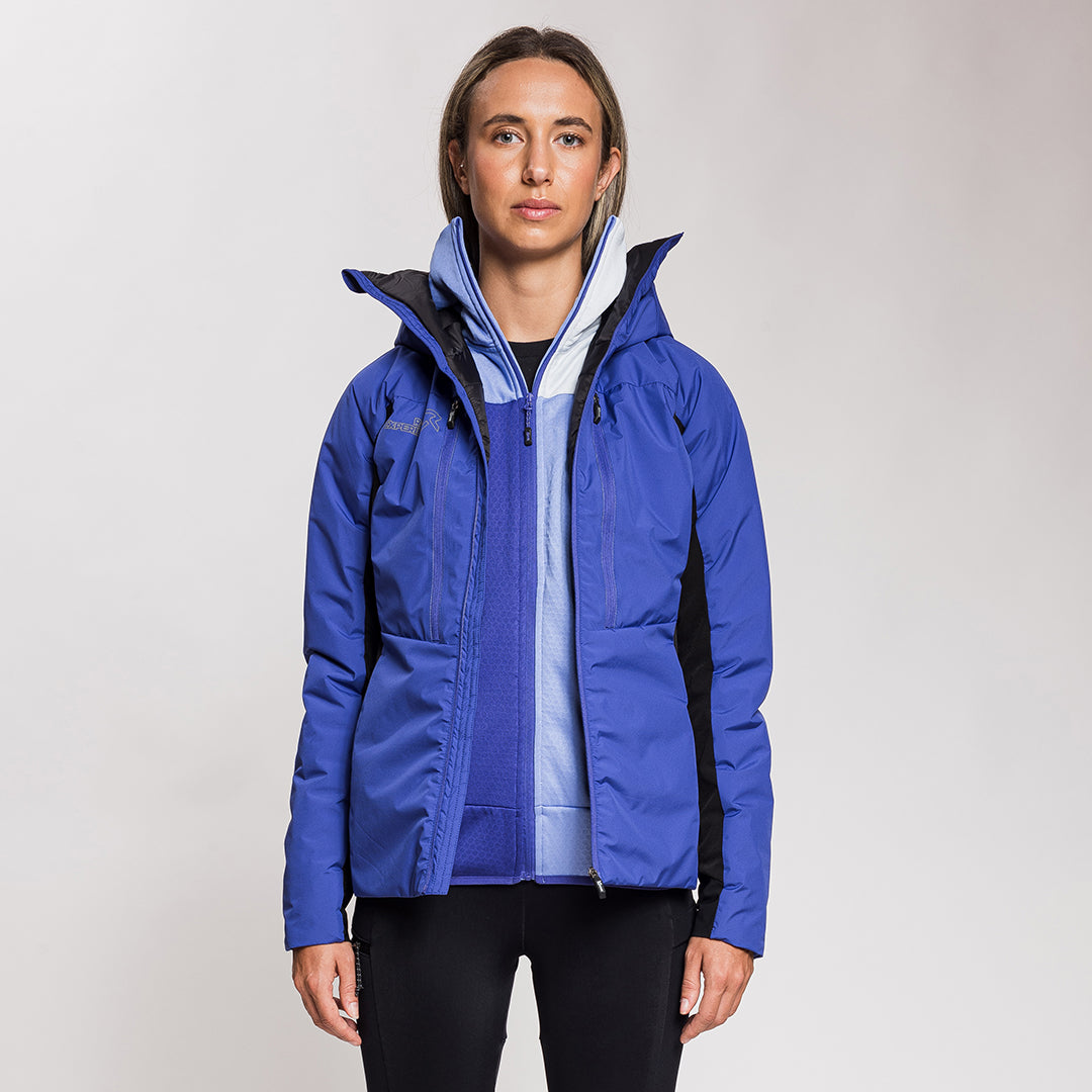 La giacca d'alpinismo Elim è progettata per attività aerobiche in ambienti alpini. La costruzione con body mapping garantisce un equilibrio tra calore e libertà di movimento. Parte frontale, posteriore e maniche superiori sono realizzate in tessuto a 2.0 strati con membrana altamente traspirante e impermeabile, imbottitura riciclata e trapuntatura interna. I pannelli laterali e le sottomaniche sono in tessuto elasticizzato 4 direzioni per migliorare la mobilità.