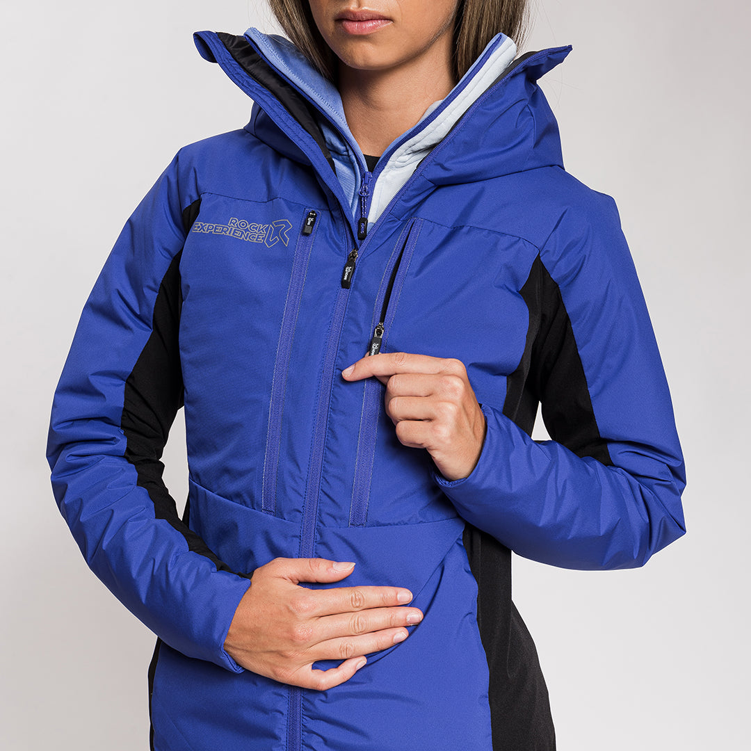 La giacca è dotata di cappuccio integrato con visiera rigida e cordino regolabile posteriore. Ampie tasche sul petto offrono praticità, mentre le cerniere con cursore autobloccante garantiscono sicurezza. I polsini interni in doppia lycra assicurano una vestibilità confortevole.