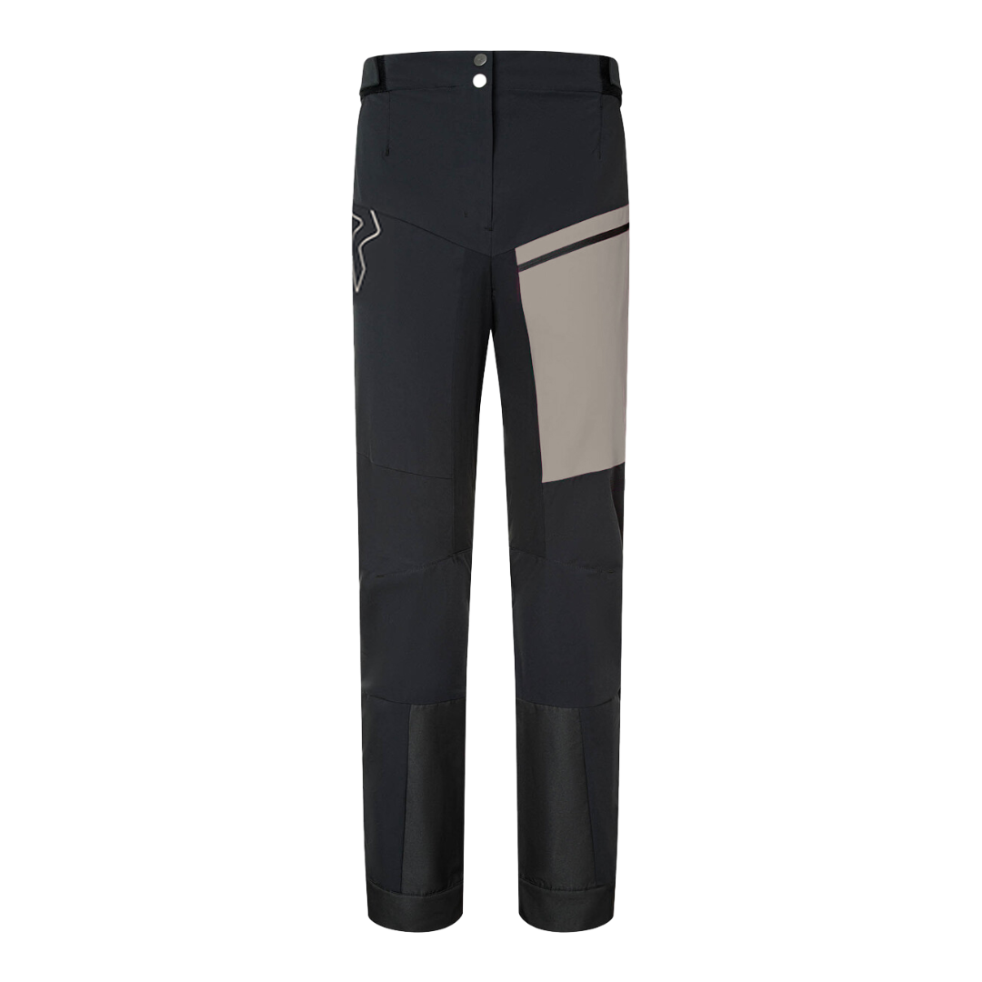 La parte inferiore delle gambe è rinforzata con tessuto resistente all’usura. Le ghette integrate, ridotte, hanno elastico interno per aderire perfettamente, mentre la patta inferiore ha due bottoni a pressione per adattarsi allo scarpone. Compatibili con bretelle.