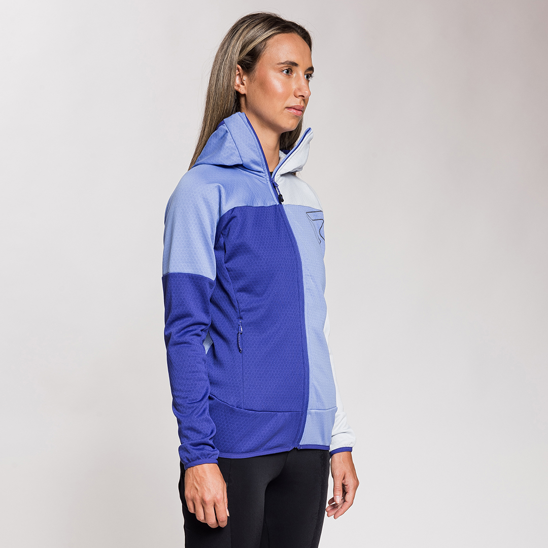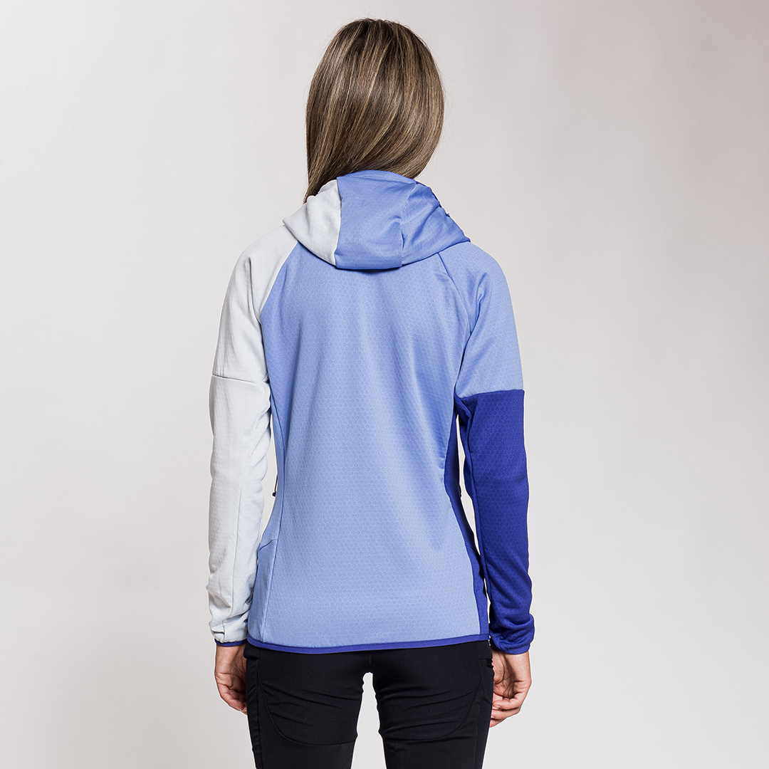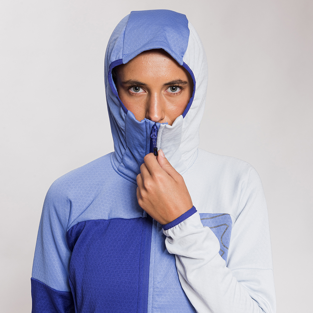 Kobra è il capo ideale per quando si ha bisogno di un secondo strato per l’escursionismo e il trekking in grado di fornire un adeguato apporto termico e una buona traspirabilità. La particolare costruzione interna del tessuto a forma esagonale intrappola infatti calore all’interno e lascia fuoriuscire l’umidità che si crea durante gli sforzi più intensi. Kobra presenta un tessuto altamente elastico, traspirante e ad asciugatura rapida per il massimo comfort. Cappuccio e polsini con bordino elastico aderiscono perfettamente al corpo donando al capo un’ottima vestibilità e garantendo massima libertà di movimento. Dal look sportivo tricolor, sgargiante ma sobrio, non fa passare inosservati lungo i sentieri e fornisce tutti i vantaggi necessari per affrontare un trekking al meglio.