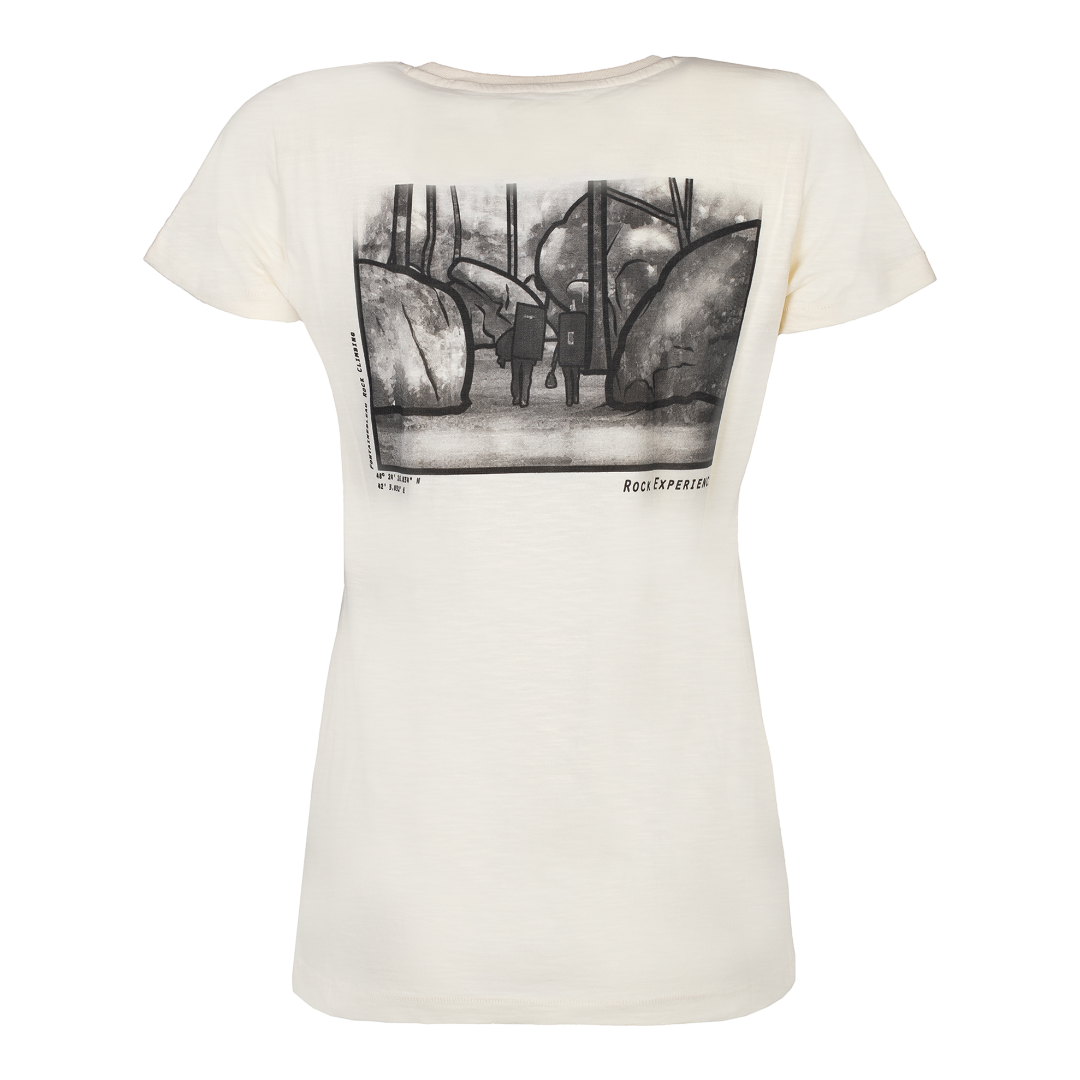 - Maglietta in cotone organico “fiammato” (slub jersey), una lavorazione speciale che rende il tessuto resistente e senza necessità di stiratura, ideale per uno stile di vita minimalista e pratico come quello dei climber.
