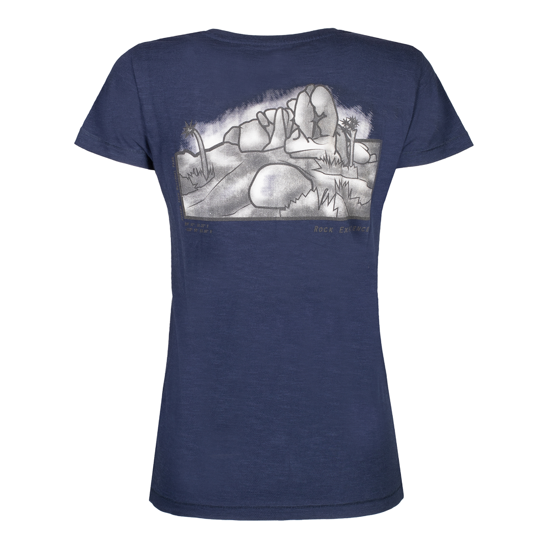 - Maglietta in cotone organico “fiammato” (slub jersey), una lavorazione speciale che rende il tessuto resistente e senza necessità di stiratura, ideale per uno stile di vita minimalista e pratico come quello dei climber.