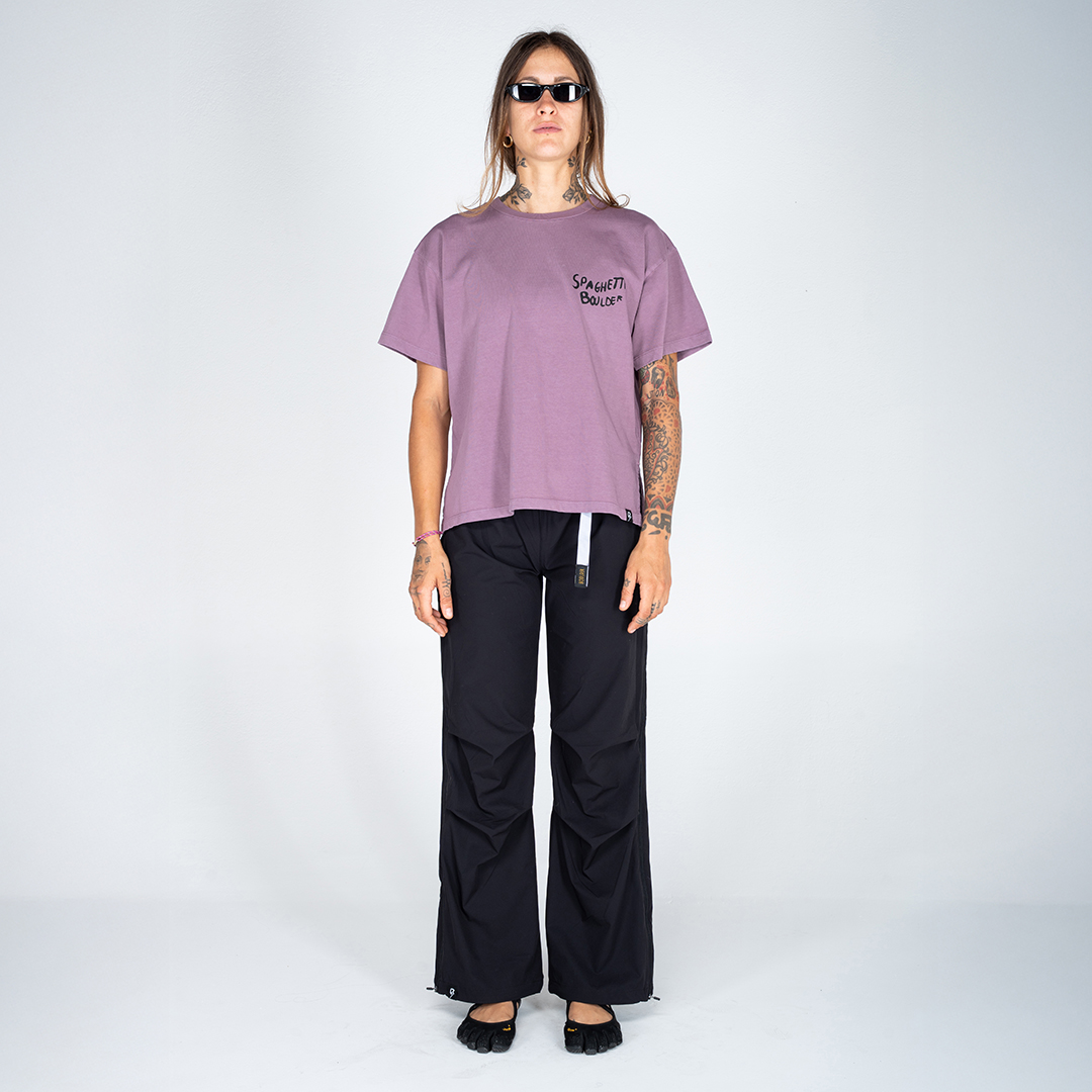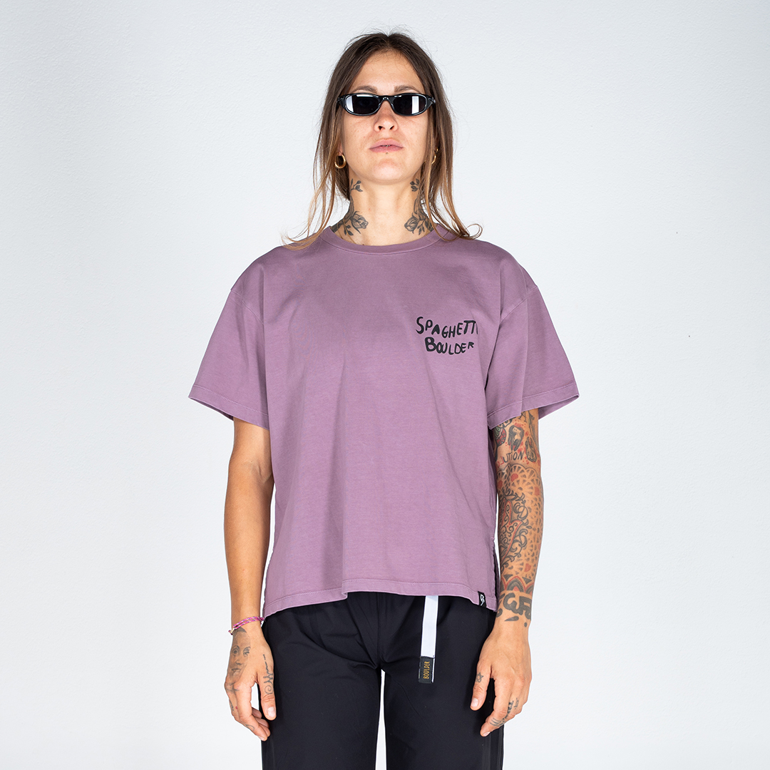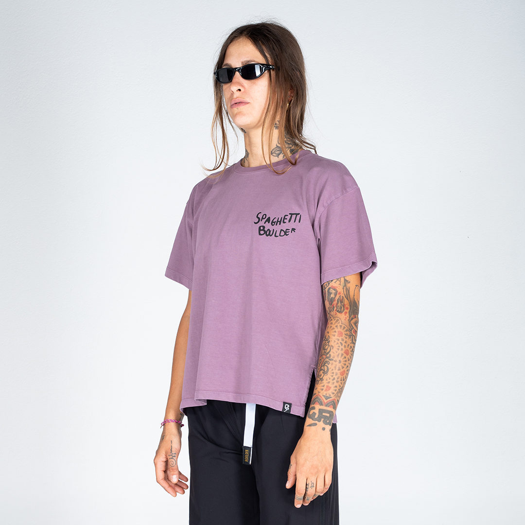 Con Spaghetti Boulder, in cui si legge un omaggio sia all’Italia sia all’outdoor, si crea un parallelismo moderno e concettuale con “Spaghetti Western”, espressione nata negli Stati Uniti d’America, che indica i lungometraggi girati in italiano, oggi veri e propri cult, associato al boulder contemporaneo. «Abbiamo scelto questo nome proprio per enfatizzare l’idea di una Italian boulder culture. La nostra penisola non solo conta numerose zone iconiche per l’arrampicata ma è anche la culla di arrampicatori oggi diventati leggende. La moderna concezione di questo sport, la naturale predisposizione e l’offerta del nostro territorio hanno acceso i riflettori sull’Italia. Oggi, infatti, la voglia di integrazione sia nel tessuto nazionale che nella cultura made in Italy del turismo sportivo è sempre più presente e costante, anche per questo, la nostra visione, non solo di business, si concentra su questo punto cardine. L’idea di poter indossare un concetto, un’identità e una cultura è stata la nostra fonte di ispirazione e principale obiettivo di questa capsule collection». Spaghetti Boulder non vuole semplicemente rappresentare l’arrampicata, vuole essere un vero e proprio stile di vita. Il sogno di poter miscelare le discipline sportive dell’outdoor, tra cui anche skateboard e surf, con la lifestyle ad esse associata, è oggi una realtà sotto un marchio completo e innovativo