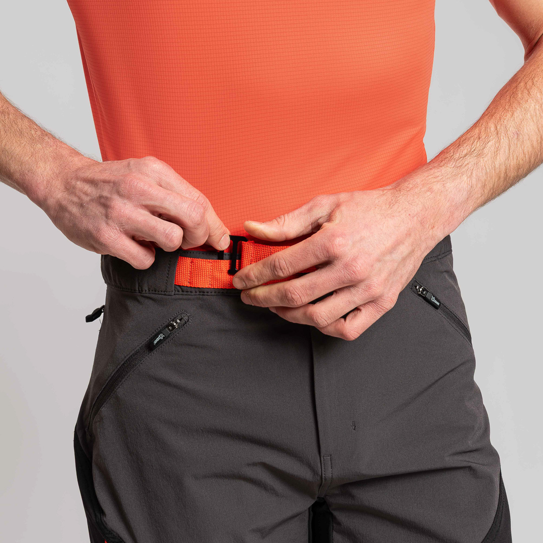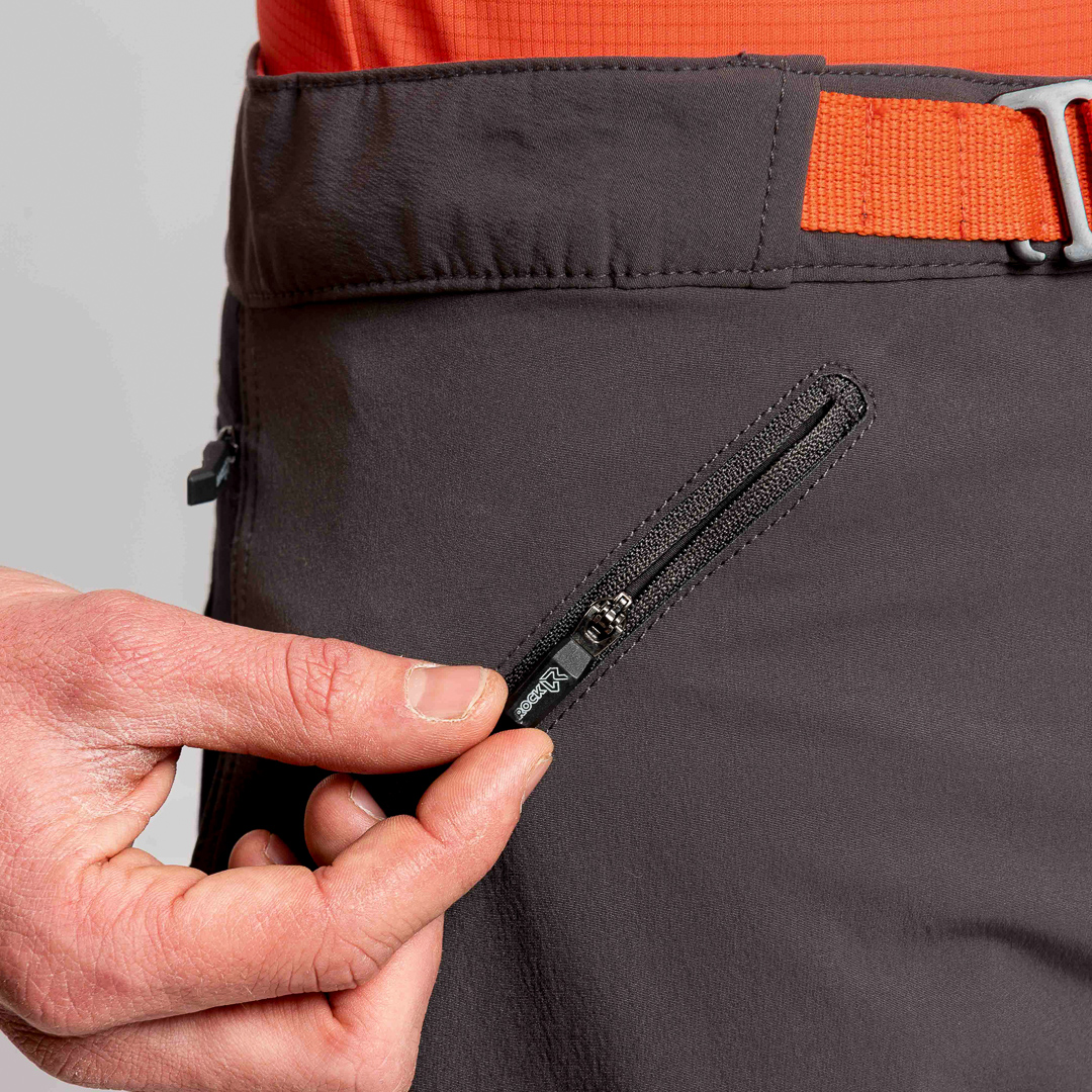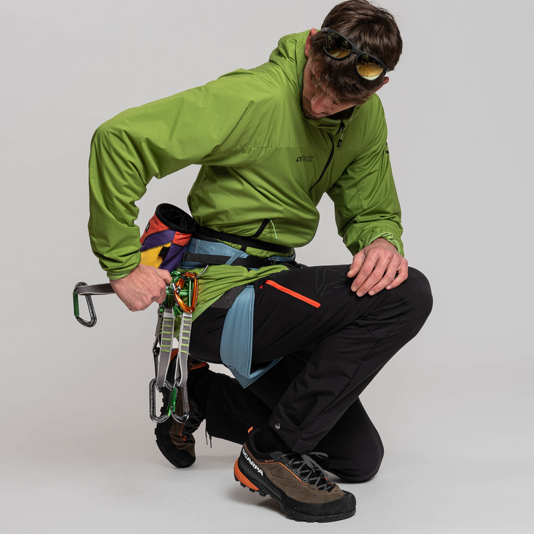 I pantaloni Labyrinthus sono un capo progettato e sviluppato in collaborazione con gli scalatori professionisti dei Ragni di Lecco. Presentano una daisy chain con gancio in metallo per la regolazione della cintura e l’interno vita con fodera in quickdry mesh; anche le tasche sono realizzate in mesh per una traspirabilità ottimale.
