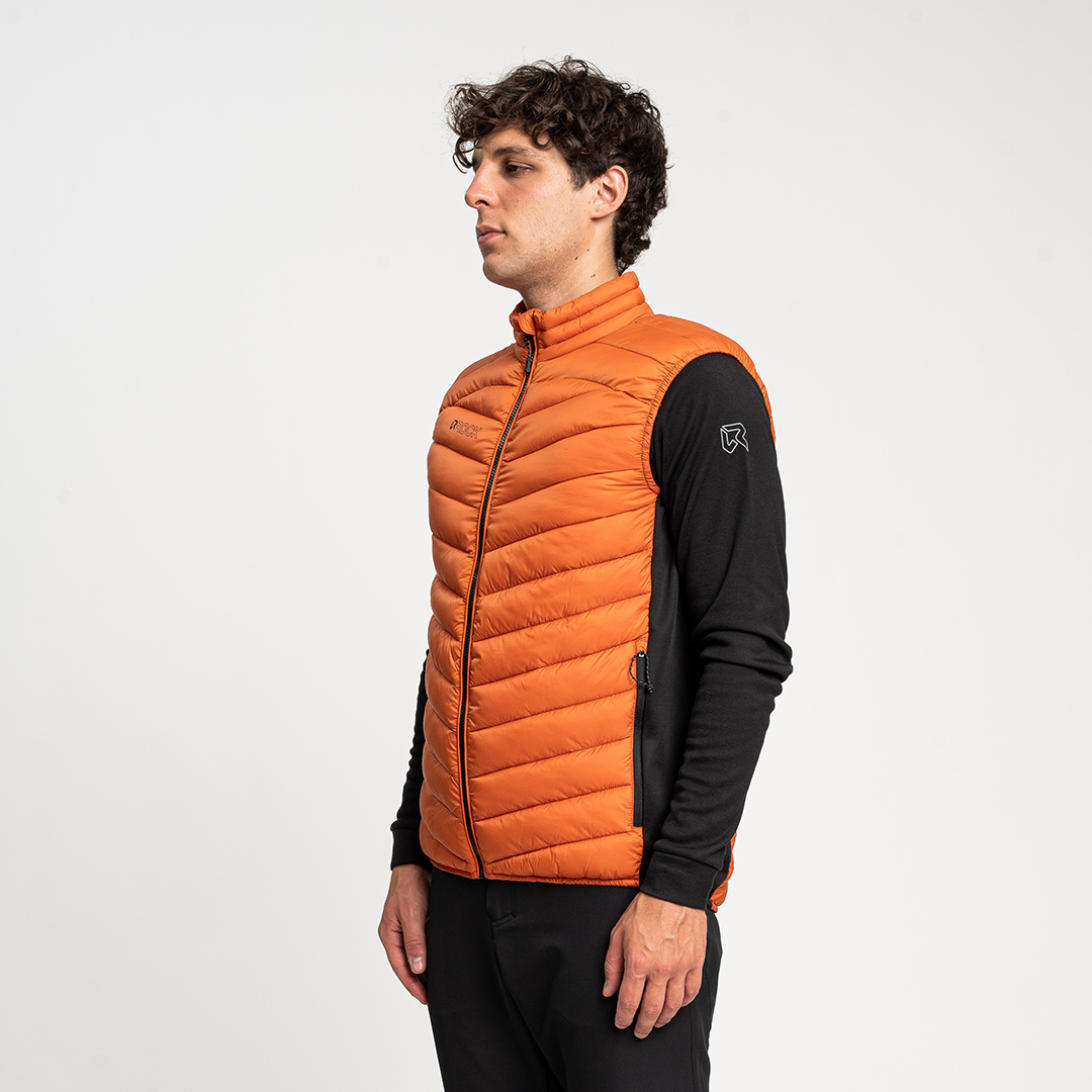 Può essere utilizzato come strato esterno nelle giornate miti o come strato intermedio sotto una giacca per incrementare il calore senza aggiungere ingombro. Il tessuto principale è trattato con un trattamento WR, che fa scivolare via l'umidità e le gocce d'acqua, mantenendo il gilet asciutto e confortevole.