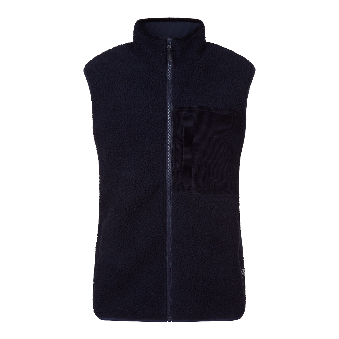Gilet realizzato in pile sherpa 100% riciclato, ideale per chi cerca comfort, stile e attenzione all’ambiente.