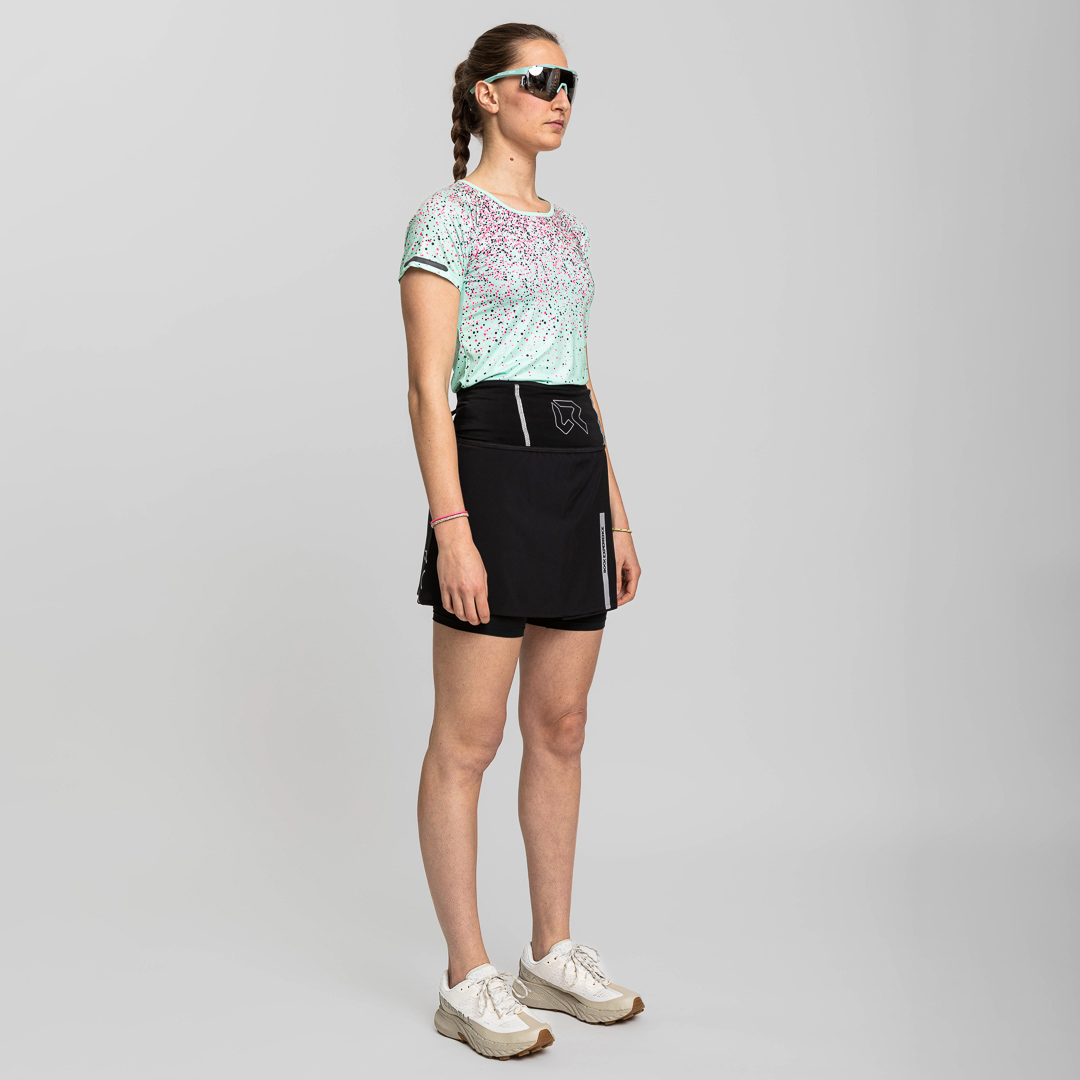 Per avere un tocco di stile in più anche durante le uscite trail c’è Izumi, un capo sviluppato da Rock Experience composto da una gonna in tessuto leggero e un pantaloncino interno caratterizzato da grafiche in stile orientale. Izumi è in 4Ways Stretch, un tessuto elastico che si adatta al corpo e assicura la massima mobilità senza ostacolare alcun movimento delle gambe. Il girovita, elastico e avvolgente, è regolabile tramite un cordino interno. Dotato di una tasca posta sul retro del girovita in cui riporre gel o barrette energetiche, presenta loghi e inserti riflettenti che garantiscono una maggiore visibilità durante le corse serali.