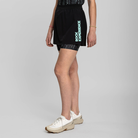 La gonna Purple Haze P. presenta un design distintivo con stampa interna e la combinazione di due tessuti: tessuto leggero elasticizzato sul davanti e tessuto plissettato sul retro. La costruzione leggera è realizzata attraverso tagli al laser e parti incollate. La cintura elastica tubolare con coulisse interna piatta permette la regolazione della vita.