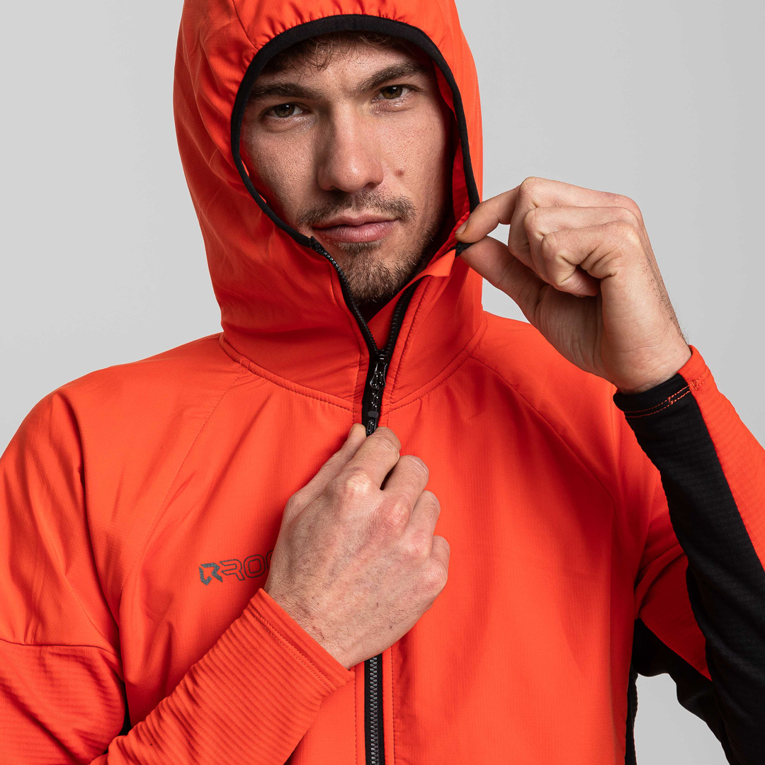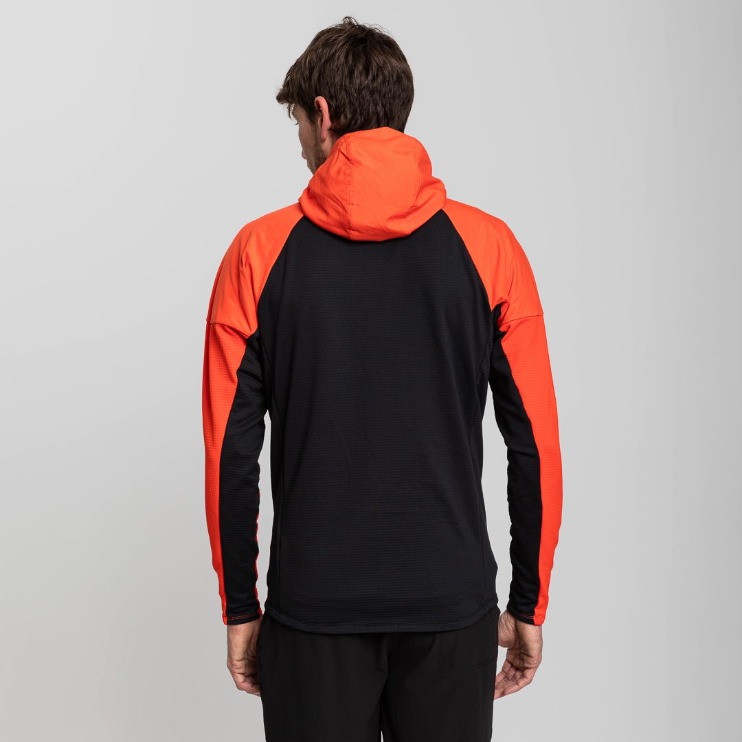 • Sul cappuccio, sulle spalle e sulla parte anteriore del corpo, il pile viene utilizzato con il motivo spazzolato come lato anteriore e il tessuto ripstop viene applicato direttamente sopra il pile. Questa soluzione aiuta a migliorare la traspirabilità, intrappolare il calore e assorbire l'umidità.