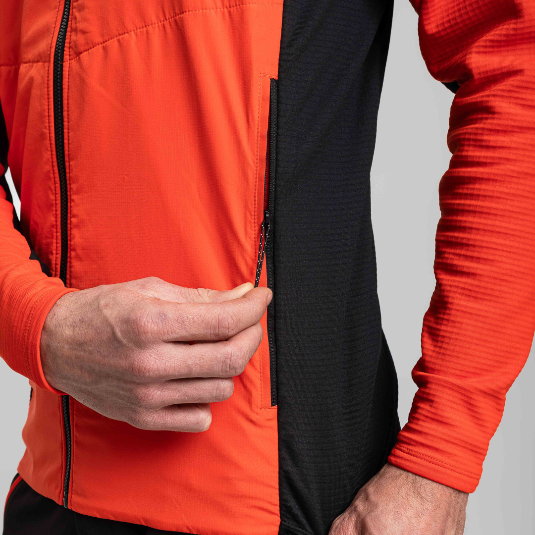 • Giacca ibrida realizzata con pile spazzolato sul lato posteriore e tessuto ripstop.