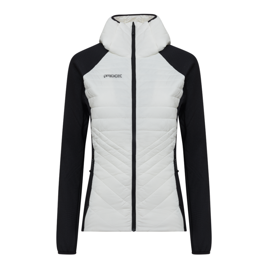 - Giacca ibrida con maniche, pannelli posteriori e laterali in pile elastico con motivo a griglia in rilievo per intrappolare il calore e assorbire l'umidità