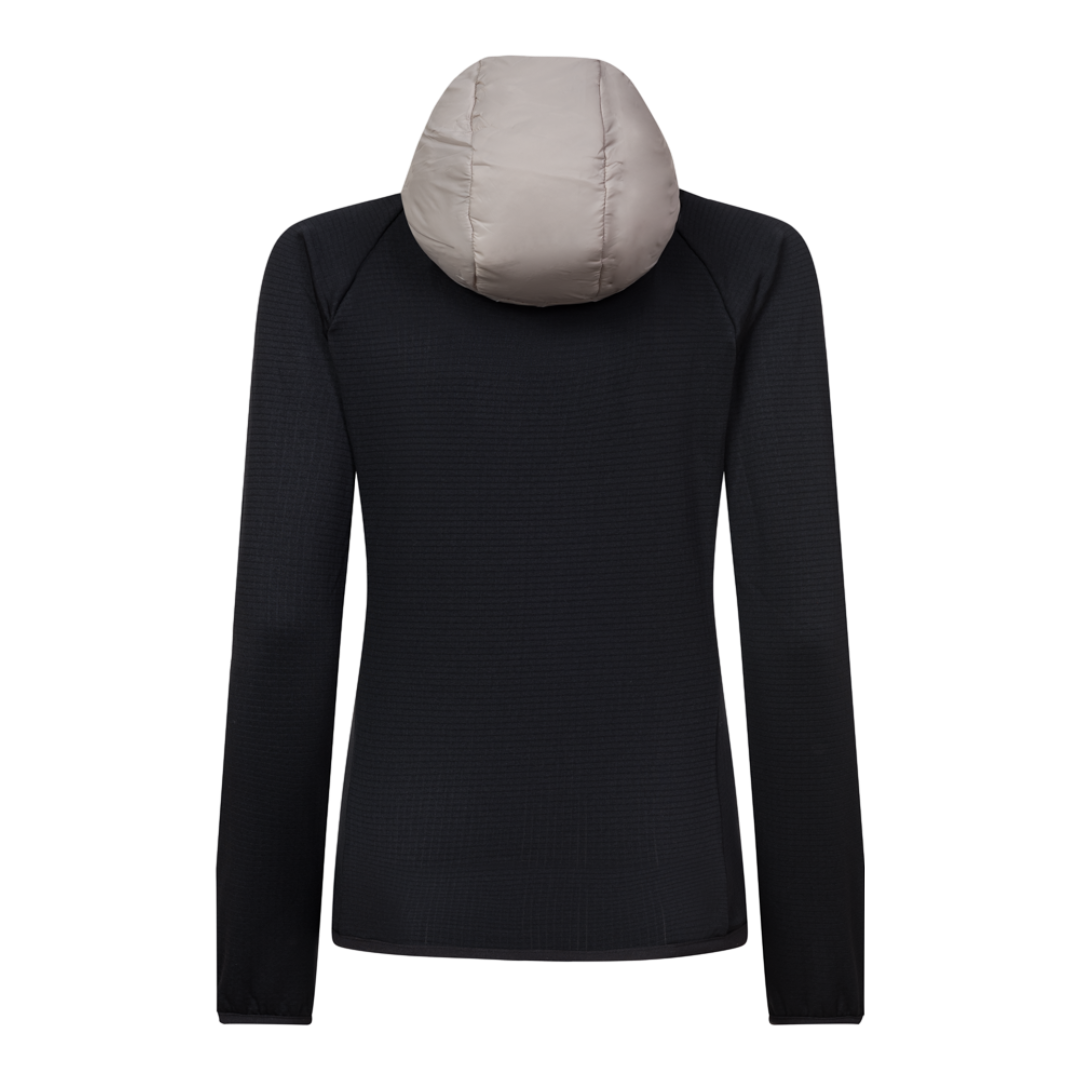 - Giacca ibrida con maniche, pannelli posteriori e laterali in pile elastico con motivo a griglia in rilievo per intrappolare il calore e assorbire l'umidità