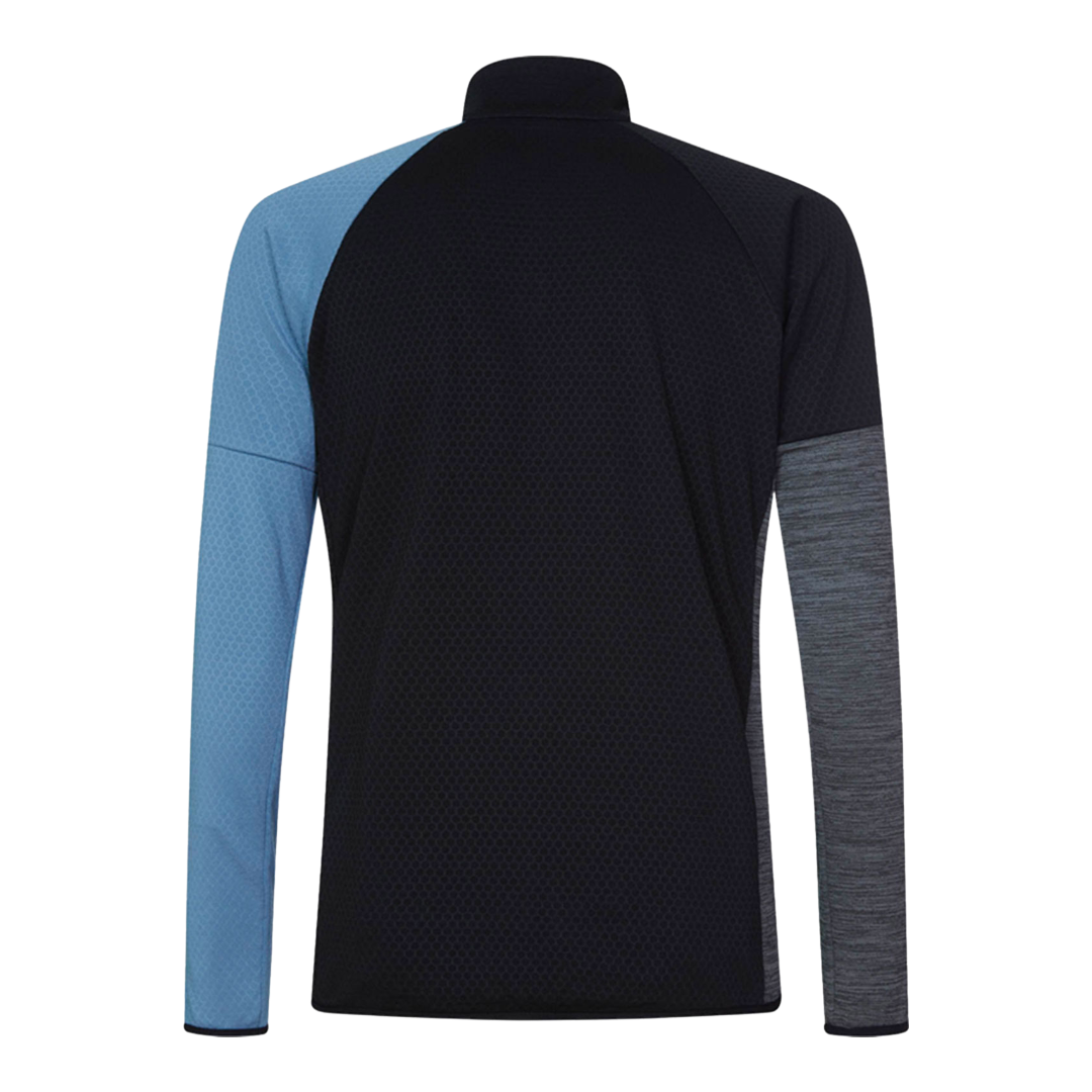 La struttura interna esagonale del tessuto trattiene il calore corporeo e allo stesso tempo favorisce l’evaporazione dell’umidità, mantenendo la pelle asciutta. Il tessuto elastico, leggero e ad asciugatura rapida assicura comfort e libertà nei movimenti.