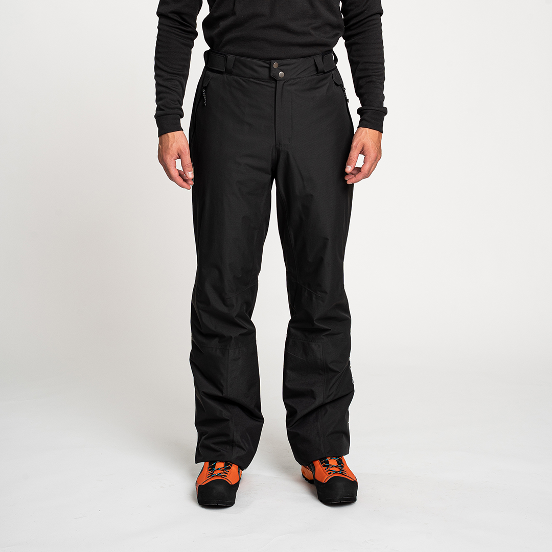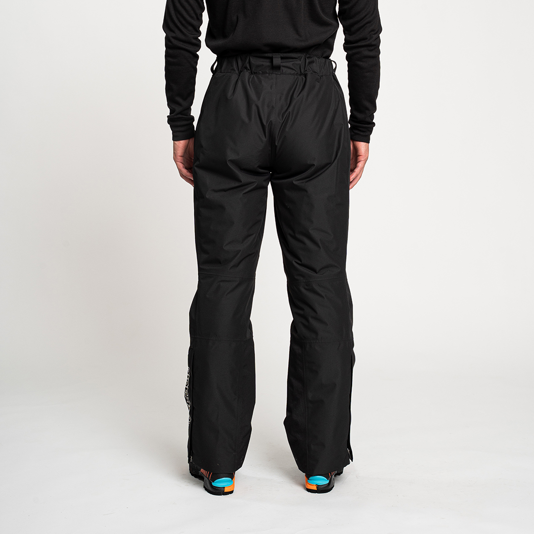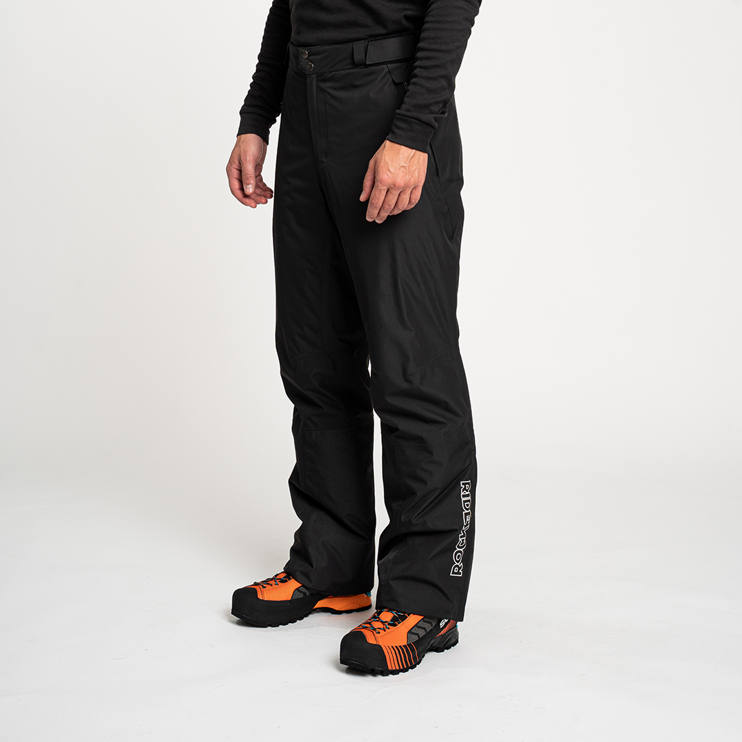 Il pantalone è dotato di tasca in vita con zip impermeabile per proteggere gli oggetti personali da neve e pioggia. Il fondo gamba è rinforzato con tessuto resistente e presenta apertura con soffietto e ghetta interna integrata per una vestibilità perfetta con scarponi da neve o alpinismo.