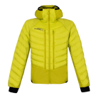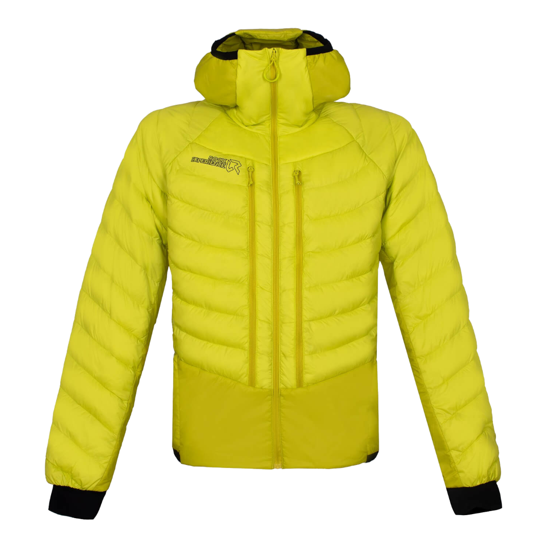 Il risultato è una giacca ibrida con imbottitura in finta piuma su busto, spalle e parete superiore delle braccia, la quale conferisce calore e lo mantiene anche quando bagnata, oltre ad essere molto comprimibile. Schiena, fianchi e cappuccio presentano invece un'imbottitura HolesNet caratterizzata dalla presenza di fori che permettono la circolazione dell'aria e la fuoriuscita del vapore acqueo durante l'attività aerobiche più intense.