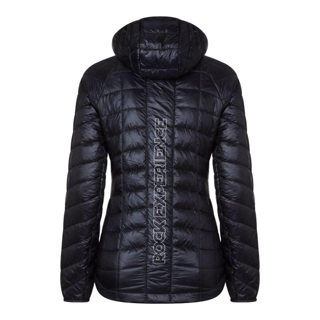 L'imbottitura in AIR FLAKE, materiale 100% riciclato, è leggera e ad asciugatura rapida, offrendo calore e comprimibilità. La vestibilità è studiata per garantire movimenti agili, con polsini elastici e lycra sul bordo del cappuccio.