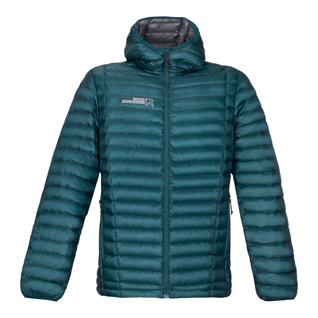 L’imbottitura in piuma d’alta qualità 95/5 garantisce massima efficienza termica con il minimo peso. Le fibre ultrasottili intrappolano l’aria creando una barriera isolante naturale, mentre il tessuto esterno in nylon microripstop 10D riciclato con trattamento DWR PFC-free offre resistenza e protezione dagli agenti atmosferici.