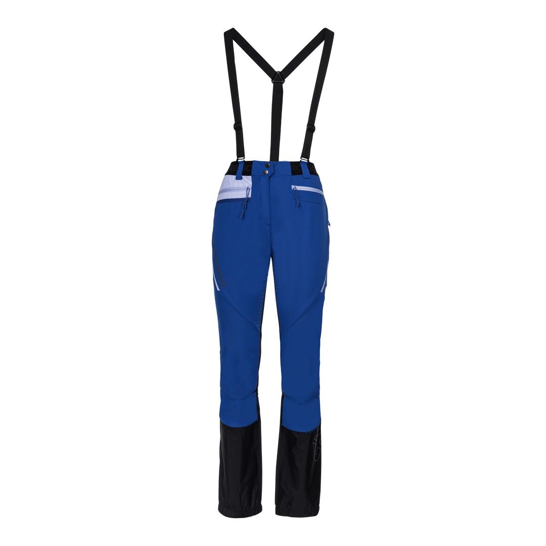 Sulla gamba anteriore è impiegato un tessuto a due strati applicato sopra la lycra garzata che compone anche il retro del pantalone, oltre a un tessuto 3L 10K/10K. Il tessuto due strati WR (Water Repellent) protegge vento e neve, mentre la lycra garzata offre elasticità e traspirabilità durante gli sforzi in salita. Il fondo gamba è realizzato in tessuto ripstop a 3 strati, resistente ad abrasioni e contatti con superfici nevose o ghiacciate.