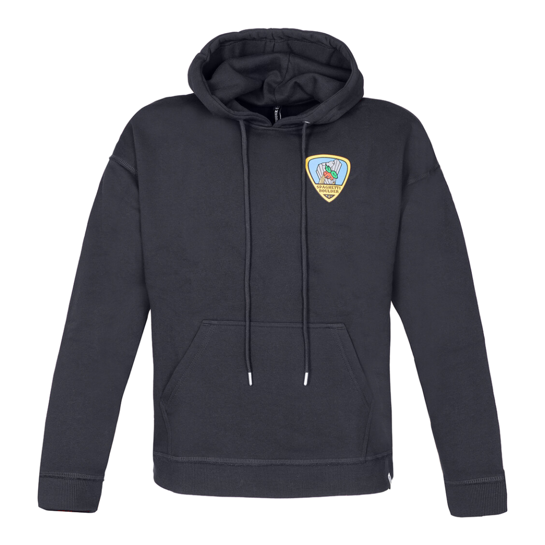 - "Spaghetti Boulder" logo stampato sul davanti