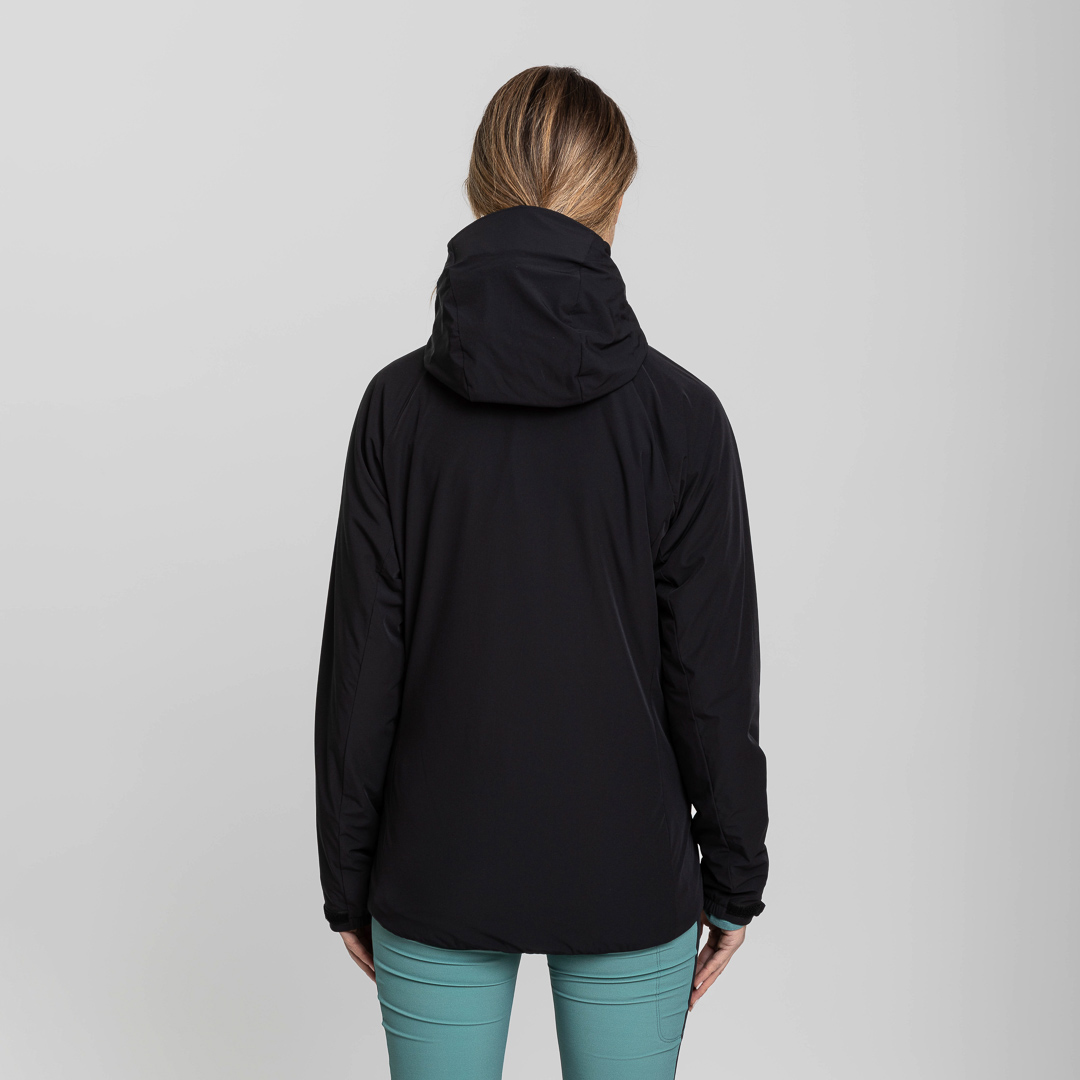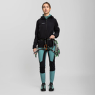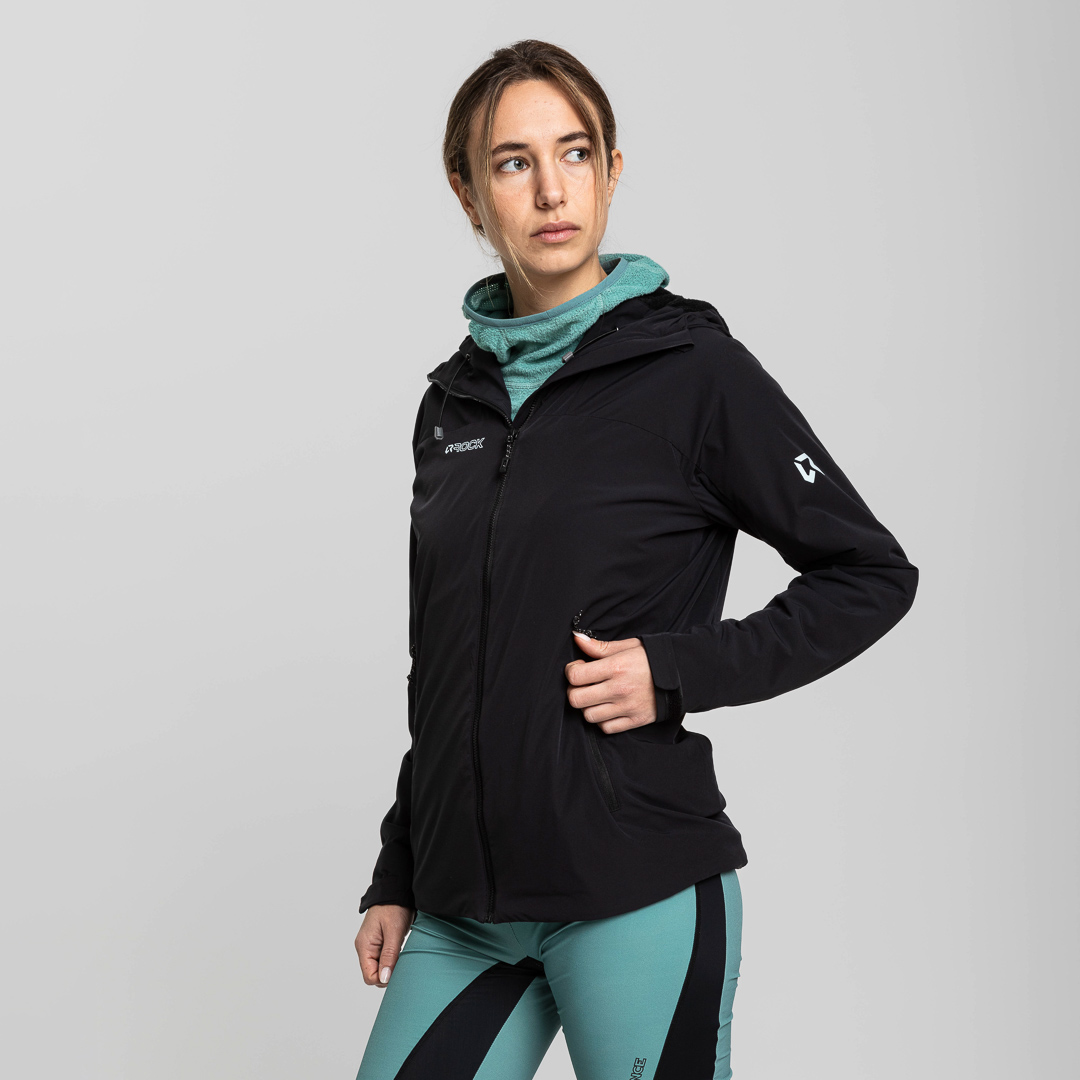 - Combina una fodera interna in rete spazzolata e un guscio esterno elasticizzato in 4 direzioni, creando una doppia trama di tessuti che lavorano in sincronia per consentire al vapore acqueo di fuoriuscire durante i movimenti veloci in montagna.