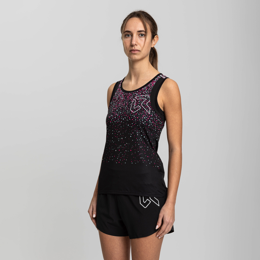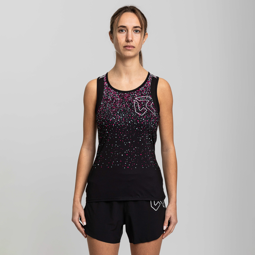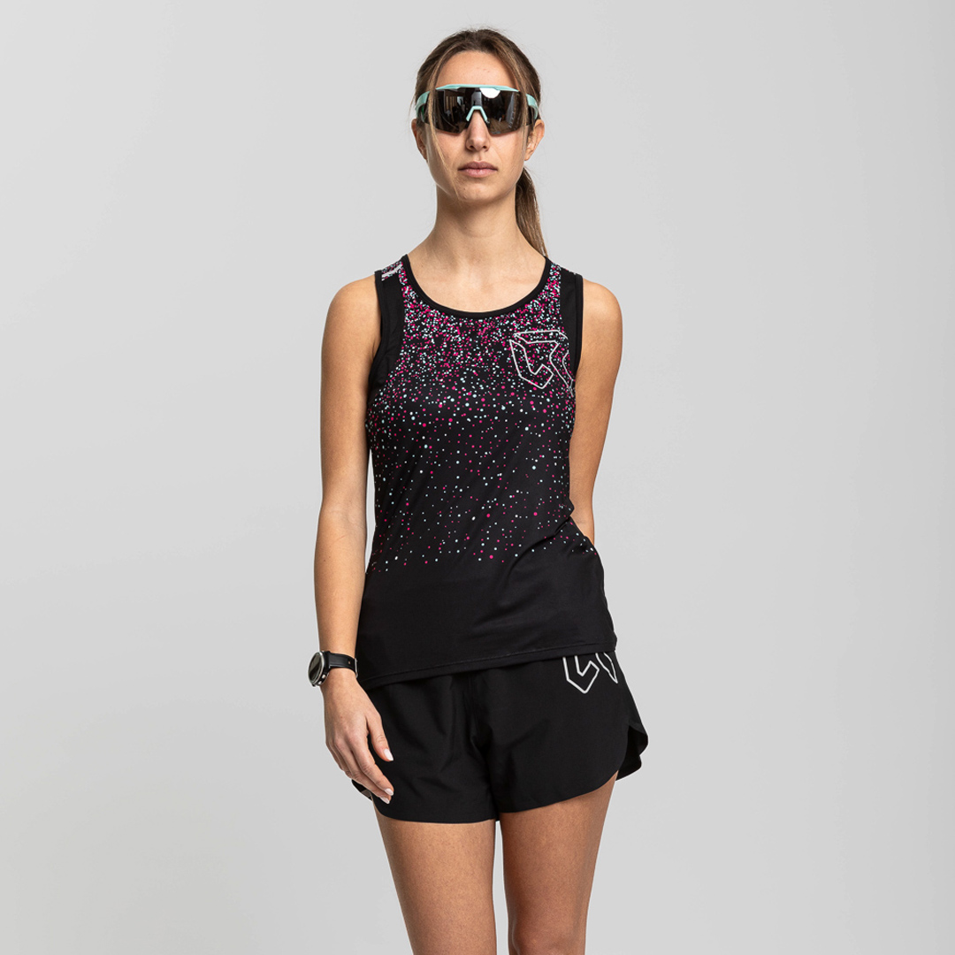 La canottiera Drip è caratterizzata da un vivace motivo a gocce colorate su davanti, retro e maniche, che le conferisce uno stile distintivo. Gli inserti in rete favoriscono l’evaporazione del sudore, assicurando comfort e libertà di movimento. Il tessuto leggero è trattato con la finitura Odor Free, che blocca lo sviluppo dei batteri responsabili del cattivo odore. Gli inserti riflettenti completano il capo, garantendo maggiore visibilità.