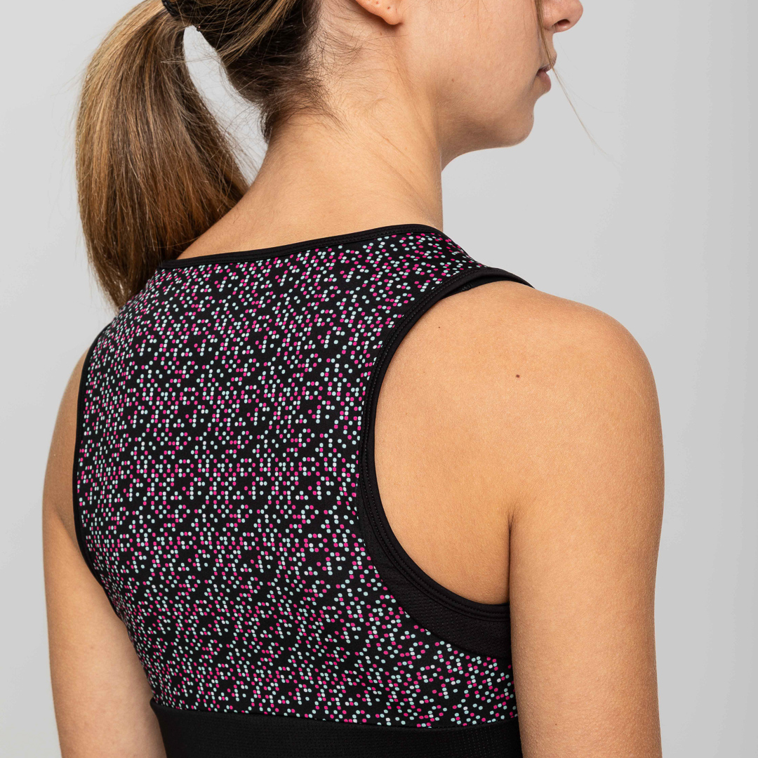 - Canotta con stampa a pois all over sullo sprone posteriore