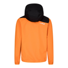 Il tessuto è resistente alle abrasioni e PFC-free, privo di sostanze nocive per l’ambiente e per la salute. Il cappuccio integrato, le cuciture nastrate e la zip frontale waterproof assicurano massima protezione da pioggia e vento, mentre i bordini elastici in Lycra su fondo maniche e orlo migliorano l’aderenza al corpo e la libertà di movimento.