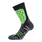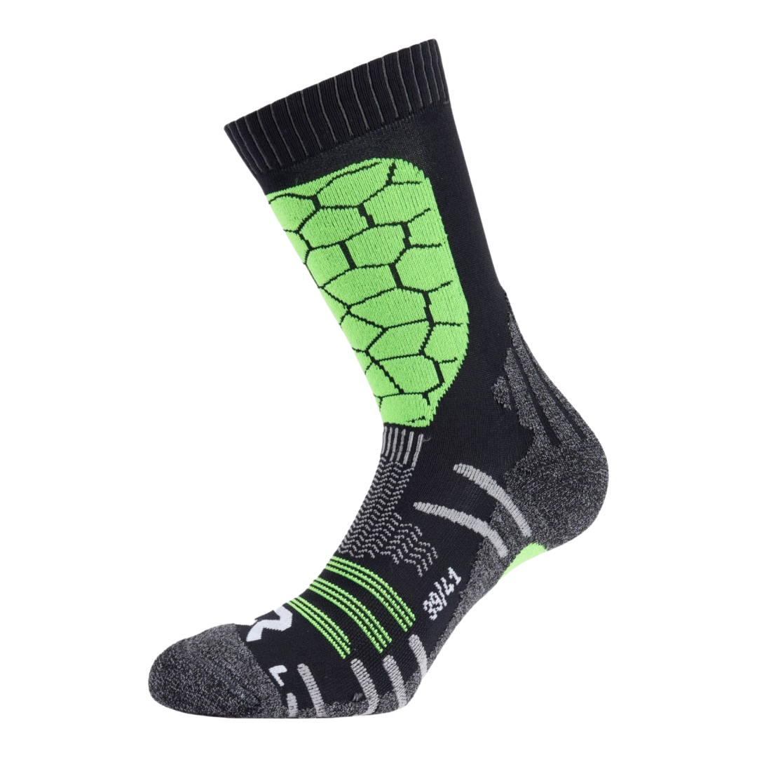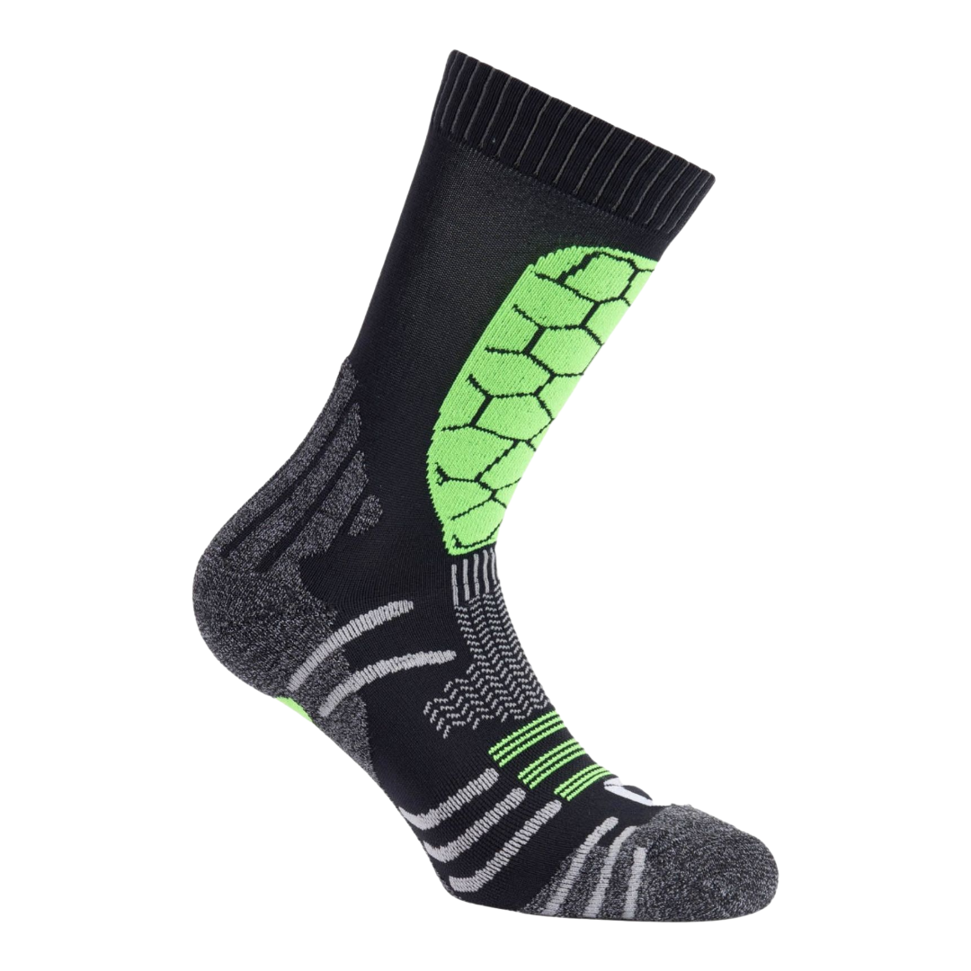 Calza da trekking in poliammide Q-SKIN, con ioni d’argento per regolare la formazione di batteri, garantendo traspirabilità, freschezza e igiene. La suola in spugna di polipropilene assicura comodità e resistenza, mentre talloni e malleolo sono rinforzati con tecnologia FRICTION FREE per ridurre la formazione di vesciche da sfregamento.