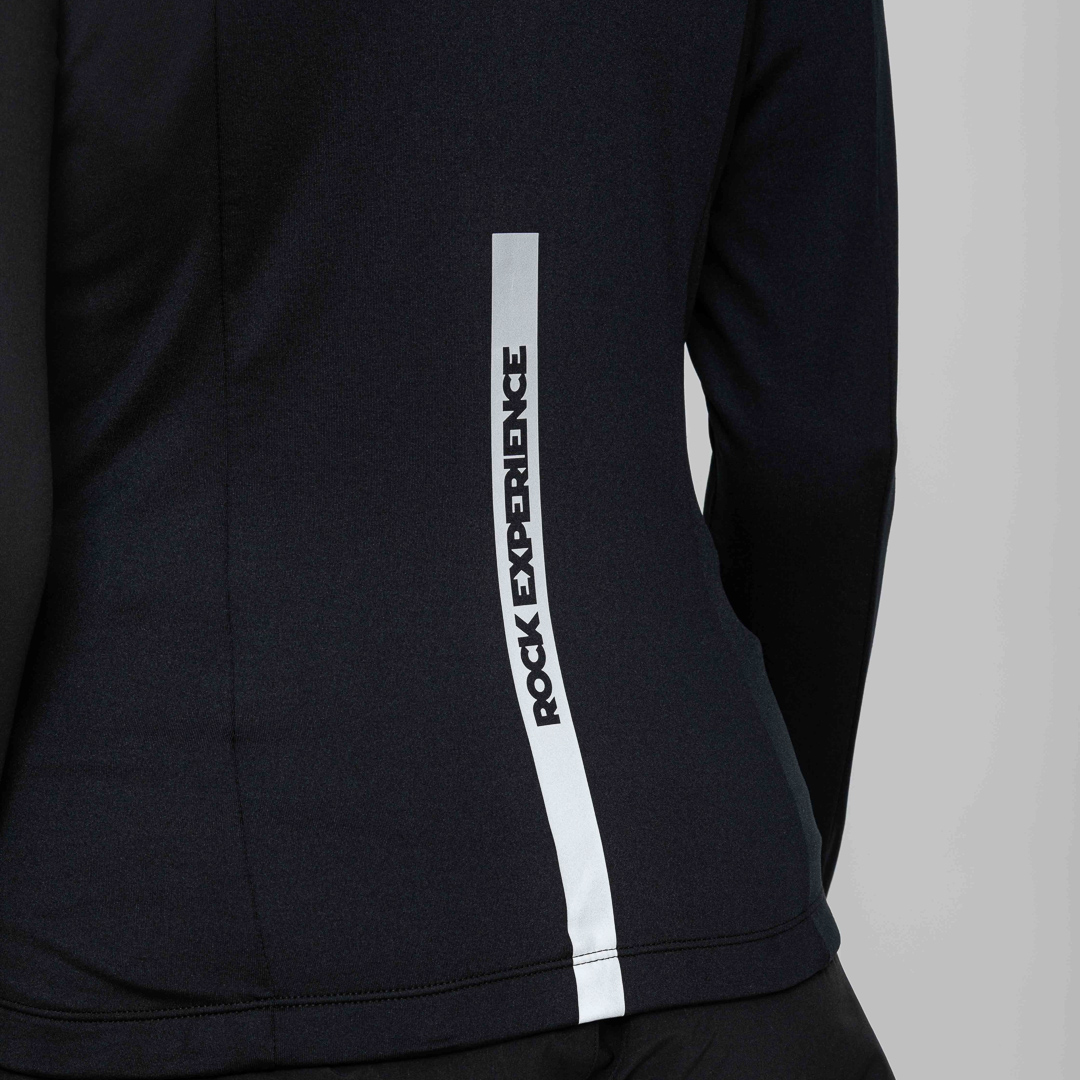 - Felpa tecnica in lycra spazzolata, morbida e traspirante, progettata per garantire comfort, elasticità e prestazioni elevate durante il trail running in montagna.