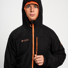 • Cappuccio integrato con visiera e bordo in lycra sui lati