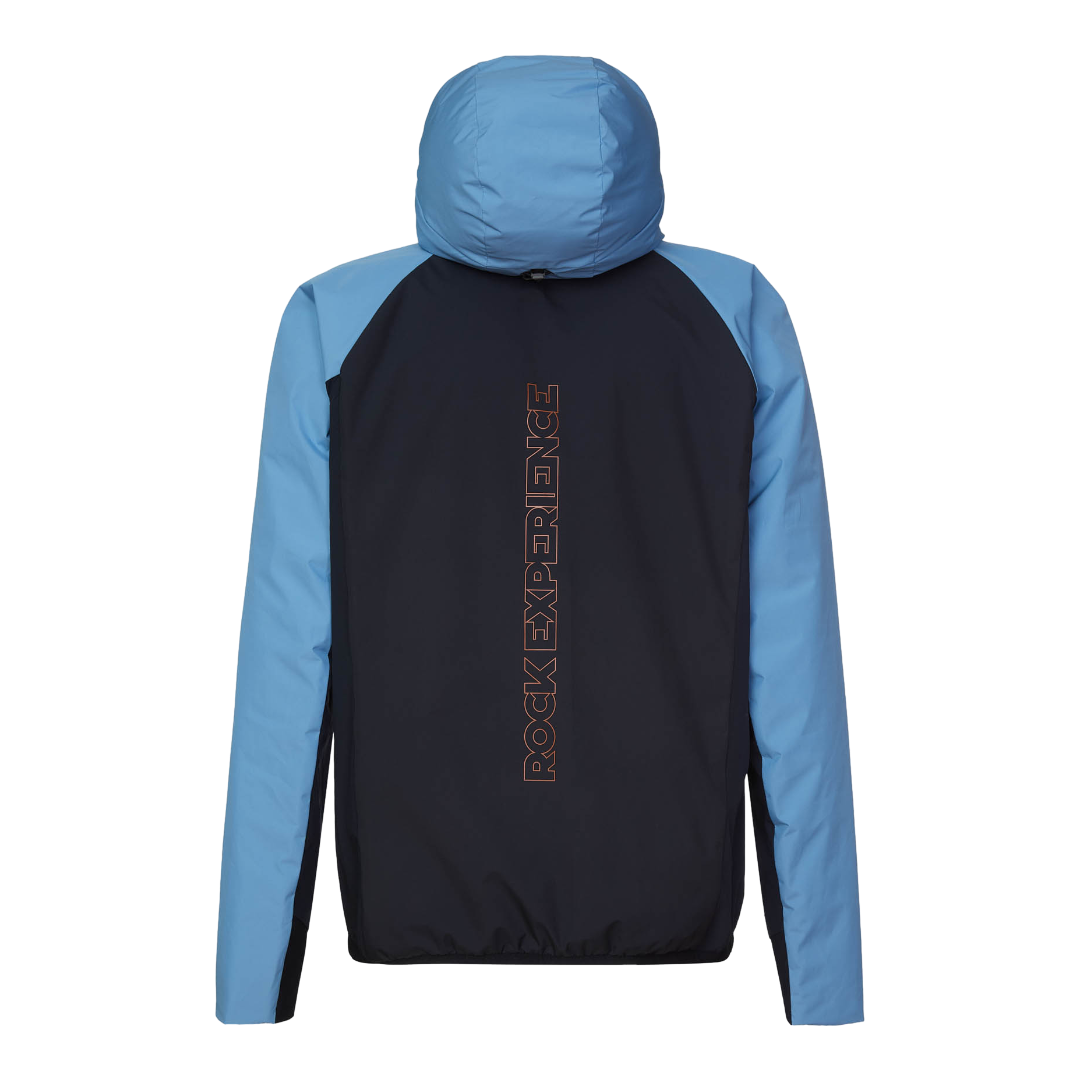 I pannelli laterali e sottomanica sono realizzati con tessuto 4 Ways Stretch per migliorare la libertà di movimento. Il cappuccio è integrato con calotta interna, ha una visiera rigida e una coulisse sul retro mentre una zip con cursore autolock personalizzata garantisce solidità durante le attività.