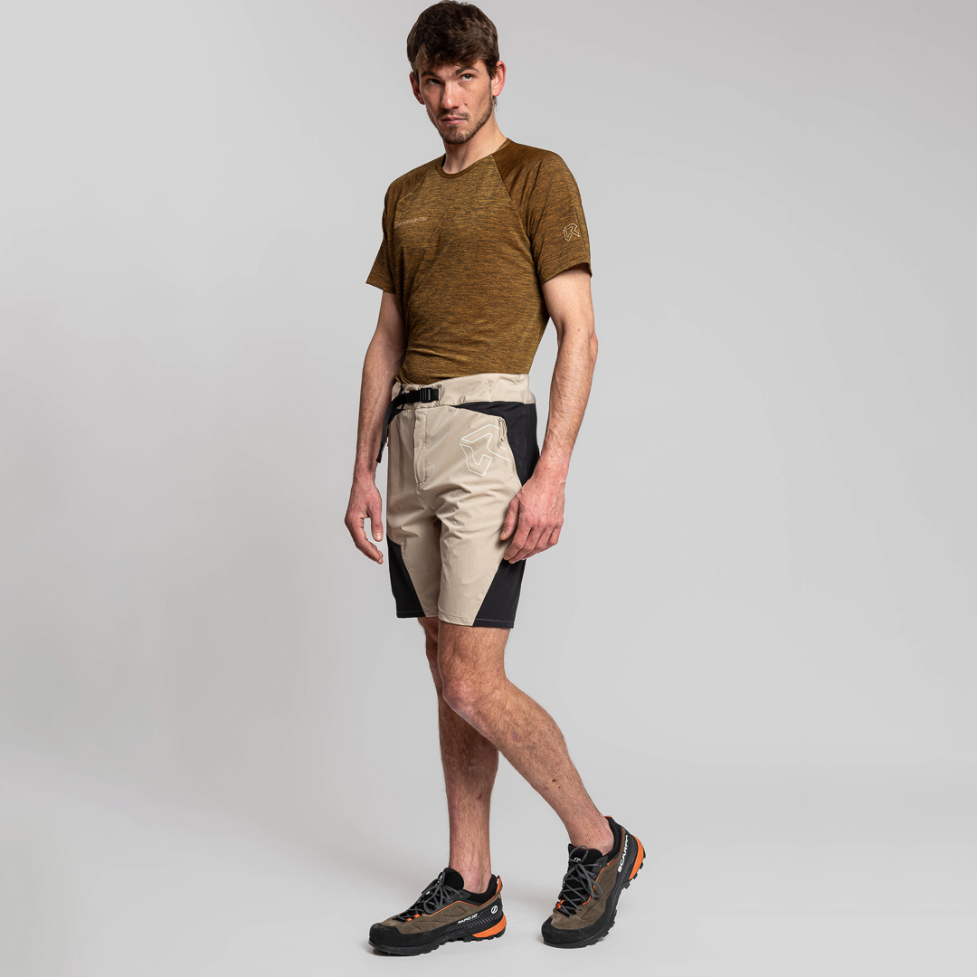 Scarlet Runner 2.0 è un bermuda per escursioni e attività in montagna. Scarlet Runner è un pantaloncino dal tessuto elastico, leggero ma molto resistente. Ha una vestibilità comoda, garantita anche dalla chiusura in vita con bottone automatico nascosto, gancio e zip e dal nastro con fibbia scorrevole sull'apertura frontale che lo rende più facile da indossare e facilita la regolazione della vita. La tasca sulla gamba destra caratterizza il capo.