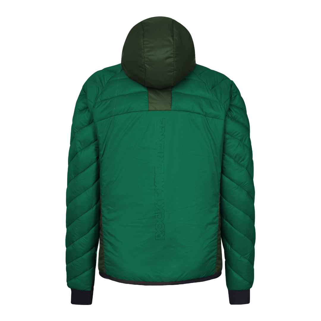 Il risultato è una giacca ibrida con imbottitura in finta piuma su busto, spalle e parete superiore delle braccia, la quale conferisce calore e lo mantiene anche quando bagnata, oltre ad essere molto comprimibile. Schiena, fianchi e cappuccio presentano invece un'imbottitura HolesNet caratterizzata dalla presenza di fori che permettono la circolazione dell'aria e la fuoriuscita del vapore acqueo durante l'attività aerobiche più intense.