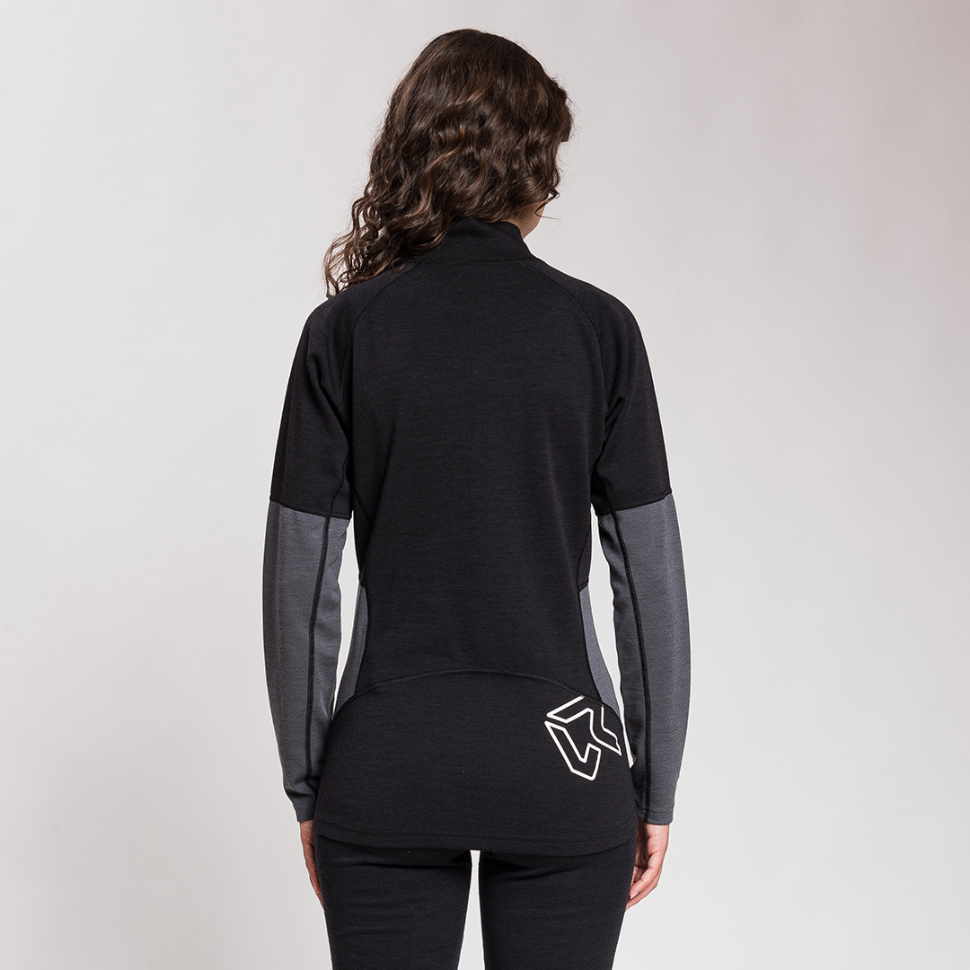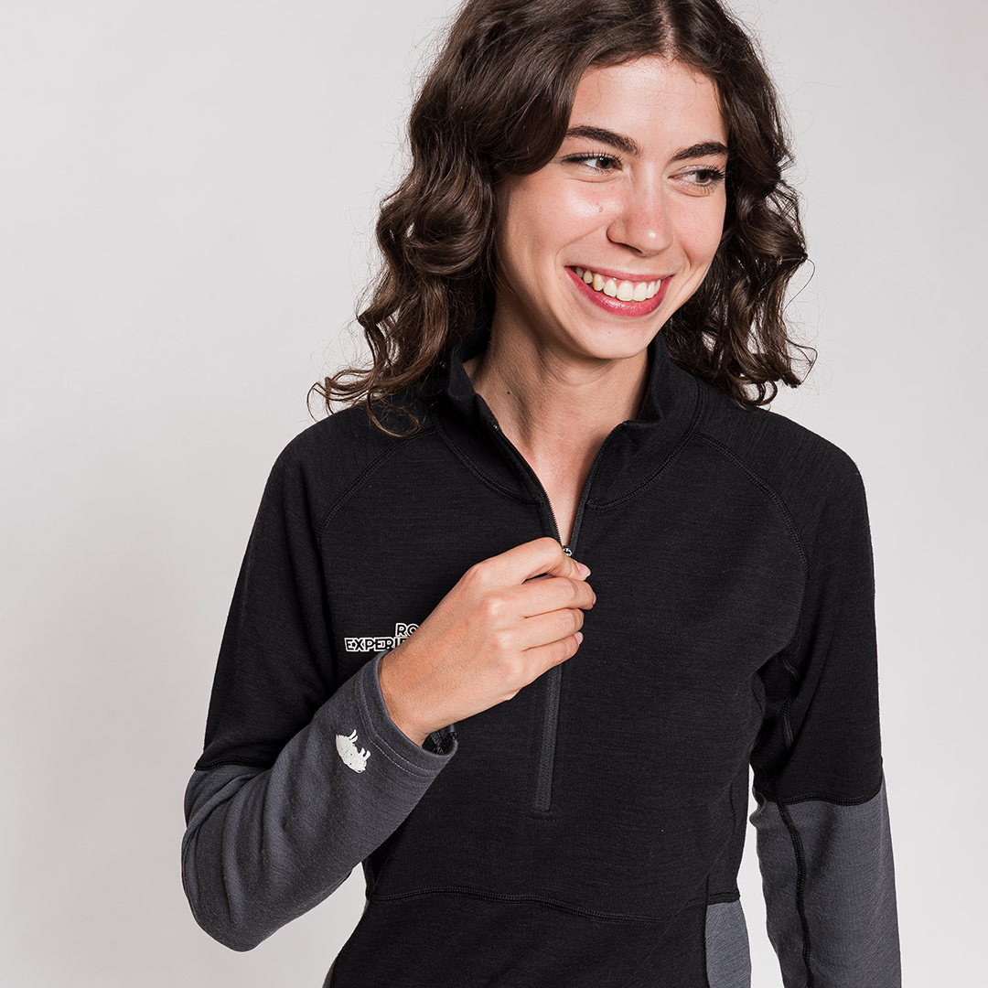 Attività invernali. La vestibilità slim senza cuciture garantisce un comfort ottimale sulla pelle e libertà massima nei movimenti. Il tessuto, termico, traspirante e ad asciugatura rapida, è composto da 50% lana merino e 50% poliestere riciclato. La lana merino è particolarmente morbida e piacevole a contatto con la pelle e garantisce un ottimo trasporto dell’umidità verso l’esterno lasciando la pelle asciutta e mantenendo il calore corporeo.