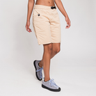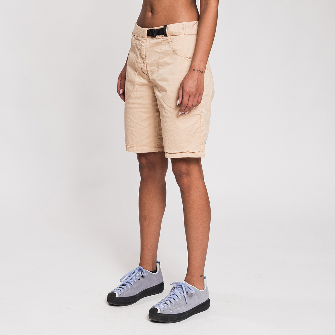 Kundalini è un pantalone bermuda dai colori scelti con cura per evocare la terra e la natura. Particolarmente confortevole da indossare, presenta in vita un bottone automatico nascosto e zip per la chiusura, oltre a un nastro con fibbia scorrevole che facilita l’indossamento e permette la regolazione della vita.
