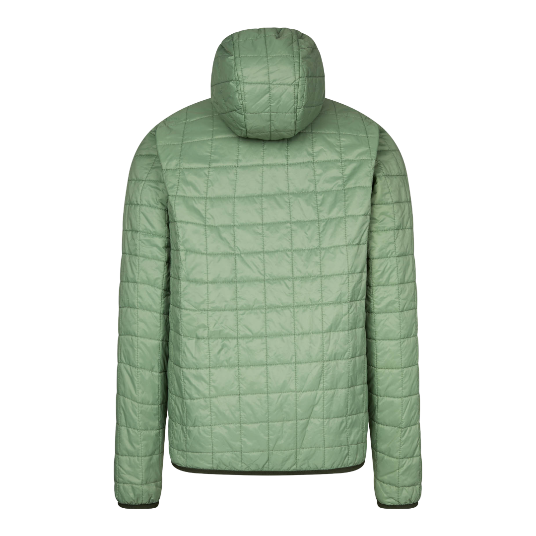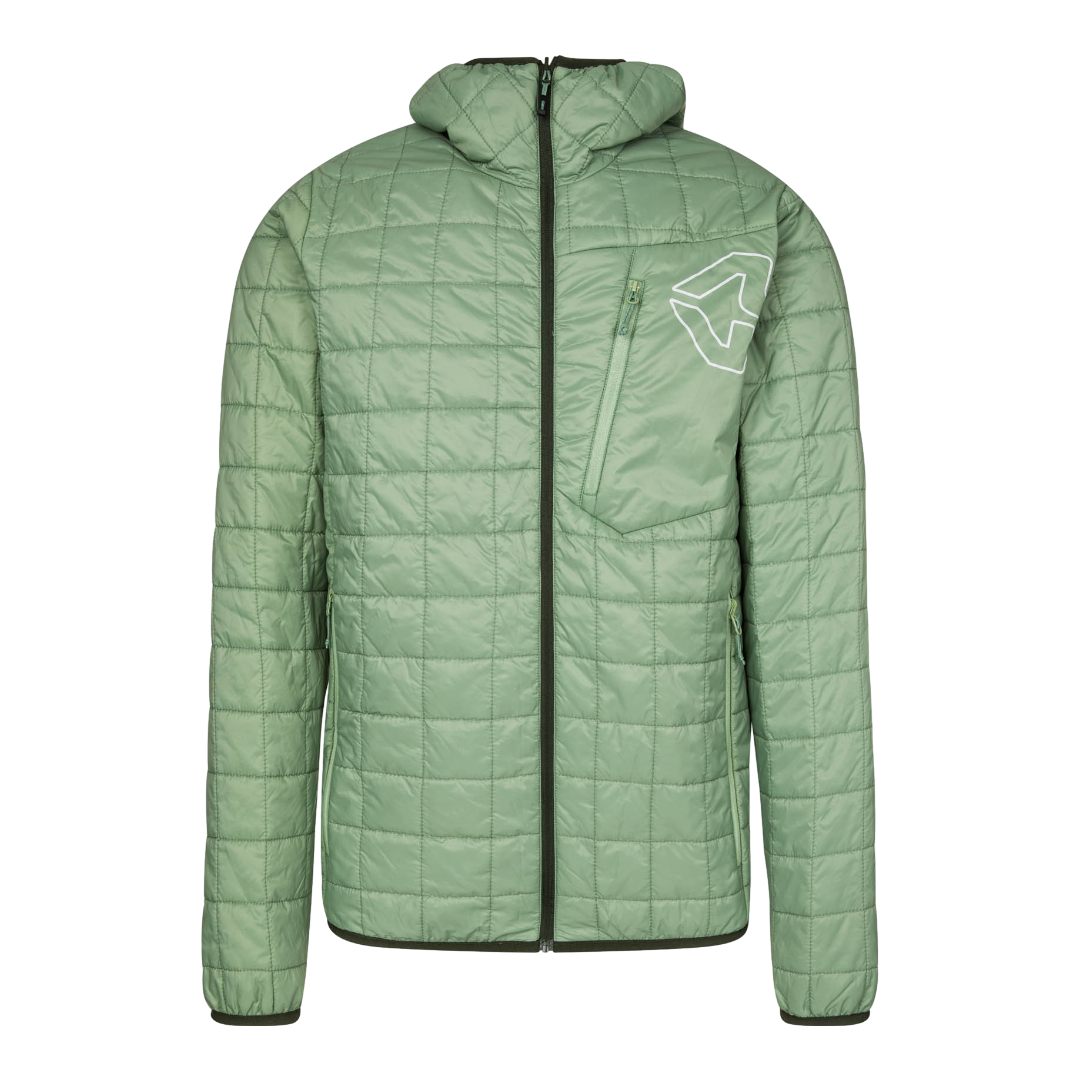 L’imbottitura leggera mantiene costante la temperatura corporea, mentre il tessuto PFC Free rispetta l’ambiente, evitando l’uso di sostanze fluorurate dannose. Il capo è dotato di cappuccio e finiture in lycra che garantiscono comfort e libertà di movimento. Inoltre, può essere ripiegata nella tasca sul petto diventando ultra compatta e facilmente trasportabile nello zaino.