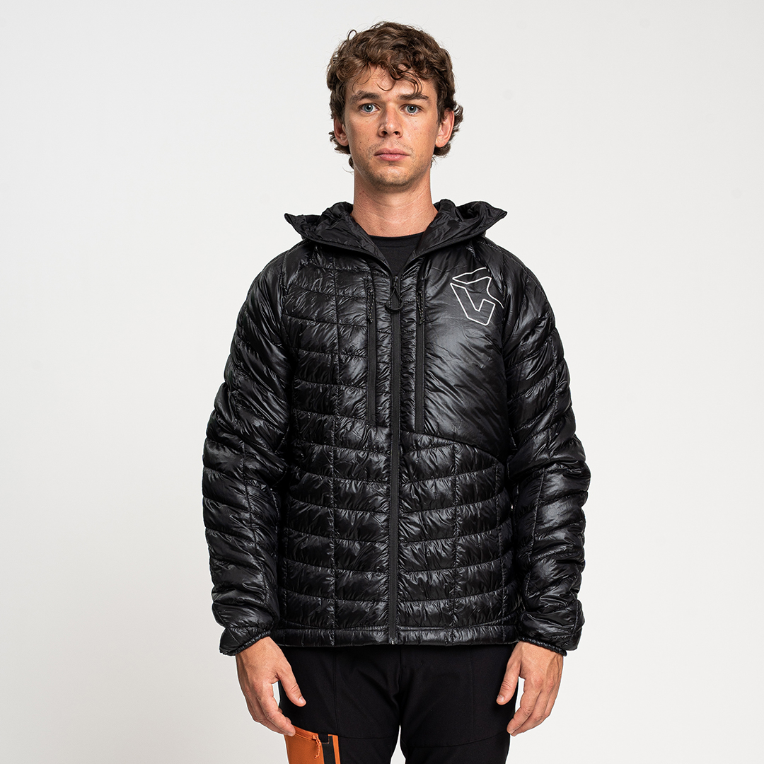 L’imbottitura è in Air Flake, un materiale 100% riciclato, altamente termico, leggero e ad asciugatura rapida. La vestibilità è studiata per accompagnare ogni movimento, con polsini elastici, cappuccio bordato in lycra e una coulisse regolabile sul fondo per un fit sempre preciso.