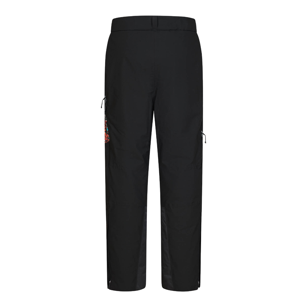 Fanatic presentano un tessuto di rinforzo sul fondo gamba con zip di ventilazione a doppio cursore e soffietto in rete, ghetta interna e due tasche con zip, una in vita e una sulla gamba.