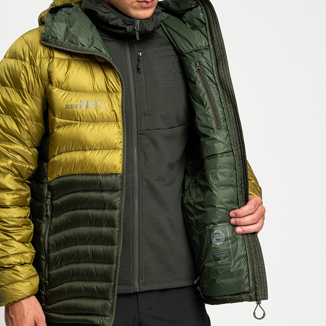 • Imbottitura in piuma d'oca 90/10 700 FP con trattamento idrorepellente per garantire prestazioni elevate anche in condizioni umide, mantenendo il calore corporeo.