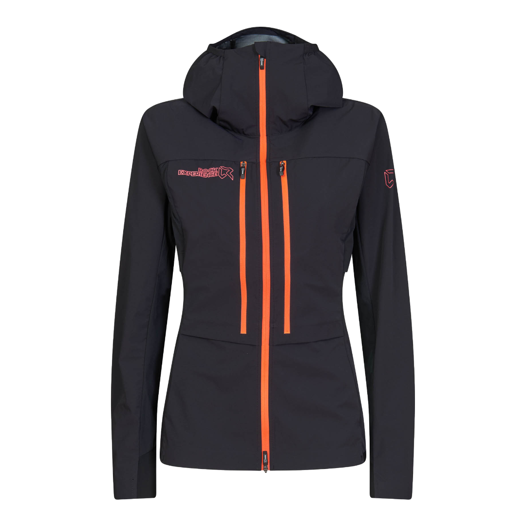 La nuova giacca di Rock Experience presenta un tessuto a tre strati con una membrana impermeabile altamente traspirante. I pannelli laterali, con strato interno in mesh, e il sottomanica sono realizzati in tessuto 4way stretch per consentire ogni movimento e regolare la temperatura interna, mentre i fianchetti sono aperti per aumentare la presa d’aria. Le tasche alte, ideali se si indossa zaino o imbrago, presentano una fodera interna in mesh e, una volta aperte, possono essere utilizzate anche per ventilare la giacca.