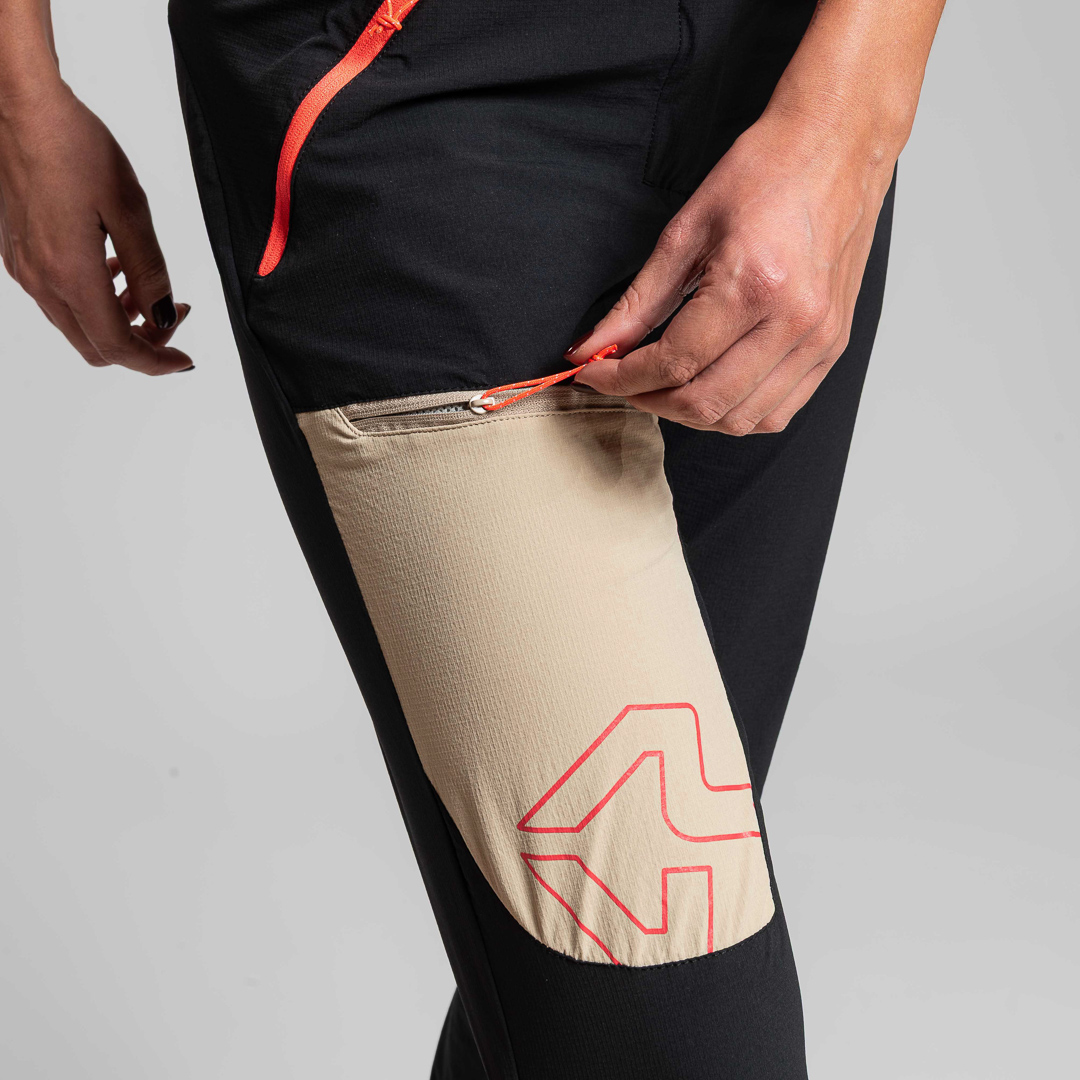 - Tasca sulla gamba destra con chiusura a zip