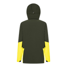 Il cappuccio è regolabile in due direzioni, con visiera cablata e compatibilità casco. Le cuciture sono termonastrate e le zip impermeabili, garantendo impermeabilità e protezione dagli agenti atmosferici.