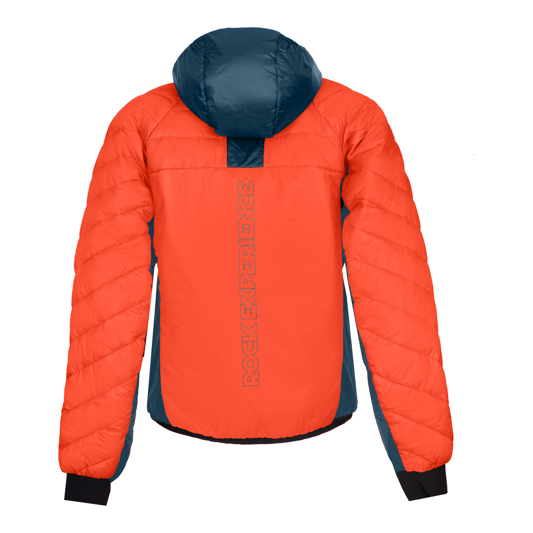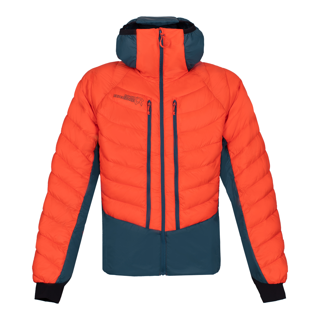 Il risultato è una giacca ibrida con imbottitura in finta piuma su busto, spalle e parete superiore delle braccia, la quale conferisce calore e lo mantiene anche quando bagnata, oltre ad essere molto comprimibile. Schiena, fianchi e cappuccio presentano invece un'imbottitura HolesNet caratterizzata dalla presenza di fori che permettono la circolazione dell'aria e la fuoriuscita del vapore acqueo durante l'attività aerobiche più intense.