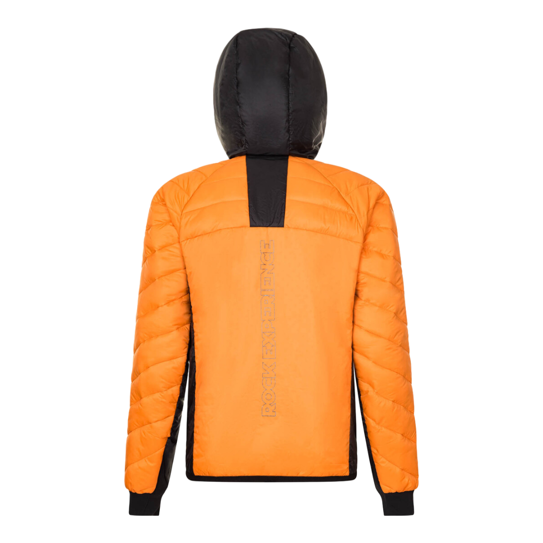 Il risultato è una giacca ibrida con imbottitura in finta piuma su busto, spalle e parete superiore delle braccia, la quale conferisce calore e lo mantiene anche quando bagnata, oltre ad essere molto comprimibile. Schiena, fianchi e cappuccio presentano invece un'imbottitura HolesNet caratterizzata dalla presenza di fori che permettono la circolazione dell'aria e la fuoriuscita del vapore acqueo durante l'attività aerobiche più intense.