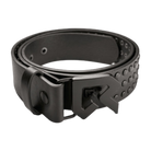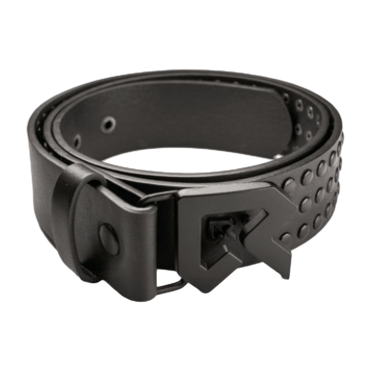 Cintura pratica ed elegante in pelle sintetica, arricchita da borchie piatte tonde e fibbia con logo Rock per uno stile distintivo.