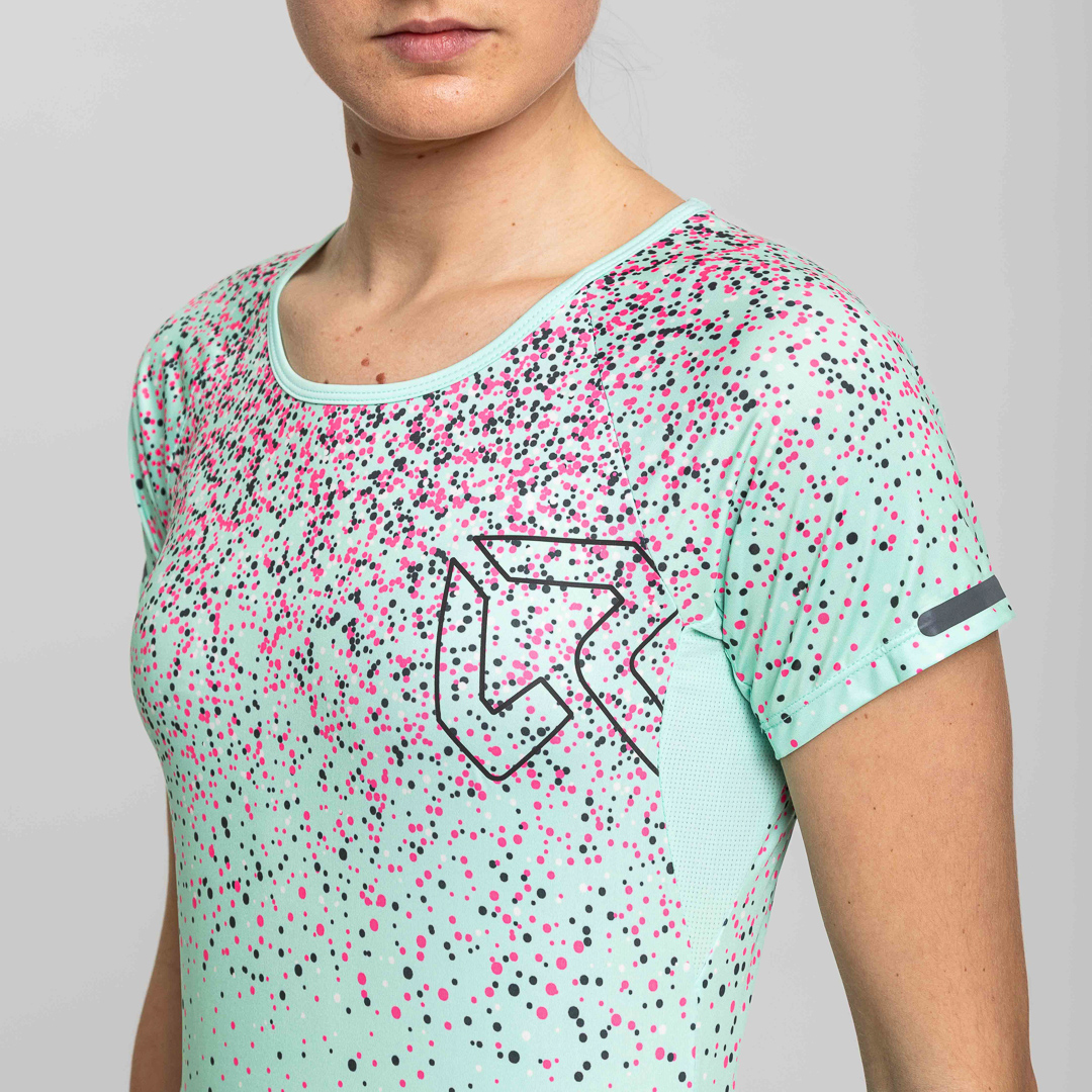 La maglietta Drip SS si distingue per un vivace motivo a gocce colorate su davanti, retro e maniche, conferendo uno stile unico. Presenta inserti in rete che facilitano l’evaporazione del sudore, garantendo comfort e libertà di movimento. Il tessuto leggero è trattato con finitura Odor Free per bloccare lo sviluppo dei batteri responsabili dei cattivi odori. Inserti riflettenti completano il capo migliorando la visibilità.