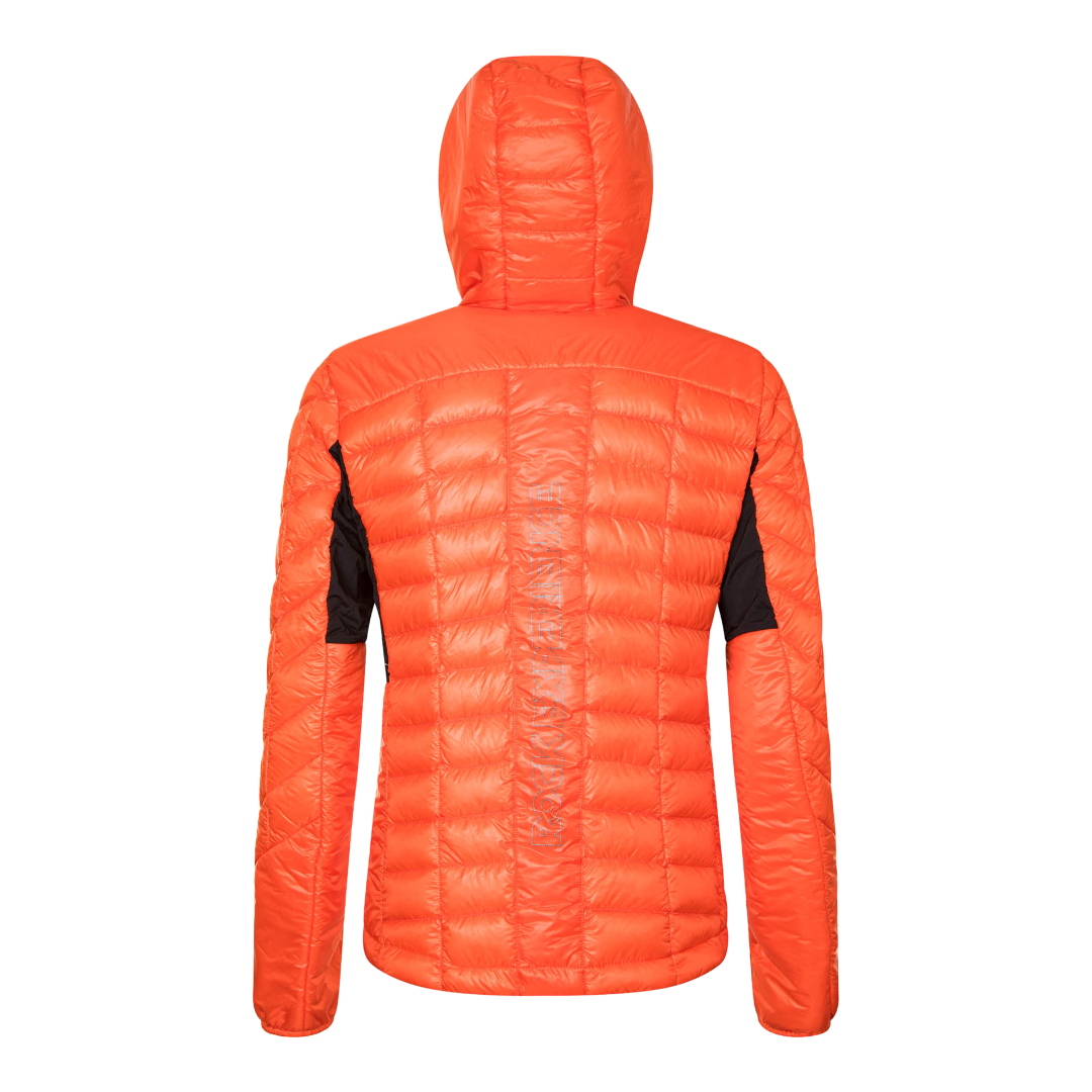 Grazie alla combinazione di imbottitura in piumino 750 FP certificato RDS e isolamento sintetico riciclato nelle zone più esposte (spalle, cappuccio, polsini), garantisce elevate prestazioni termiche anche in condizioni umide.