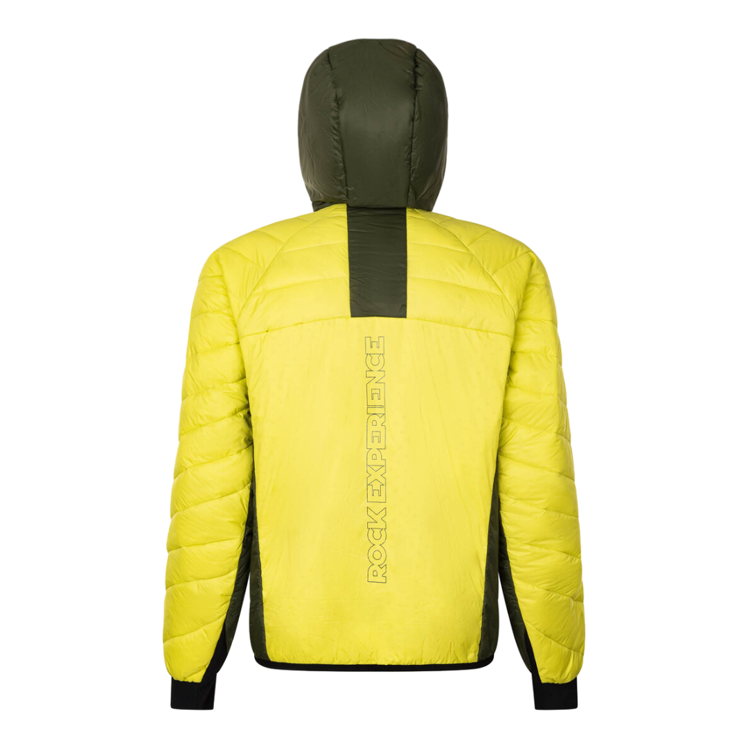 Il risultato è una giacca ibrida con imbottitura in finta piuma su busto, spalle e parete superiore delle braccia, la quale conferisce calore e lo mantiene anche quando bagnata, oltre ad essere molto comprimibile. Schiena, fianchi e cappuccio presentano invece un'imbottitura HolesNet caratterizzata dalla presenza di fori che permettono la circolazione dell'aria e la fuoriuscita del vapore acqueo durante l'attività aerobiche più intense.